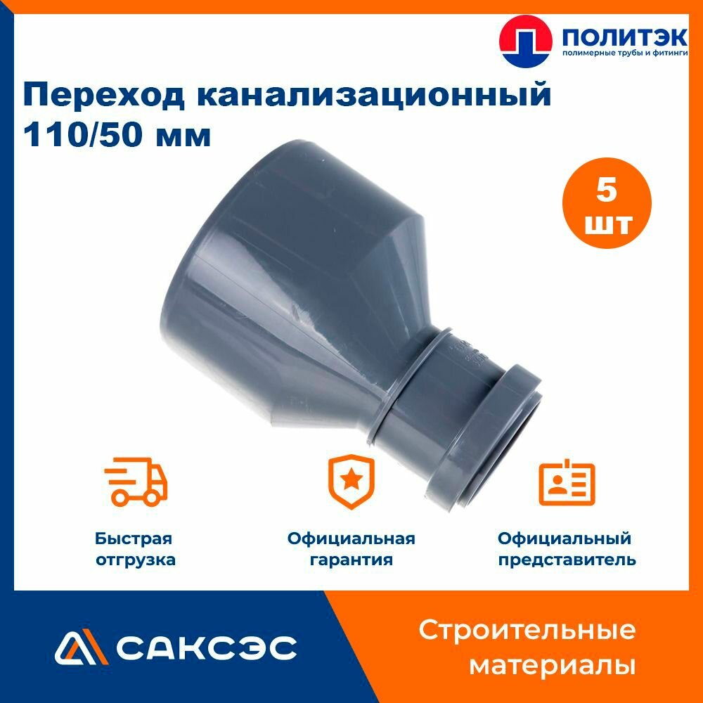 Переход канализационный 110/50 мм, Политэк / Переход эксцентрический, 5шт. интересное: