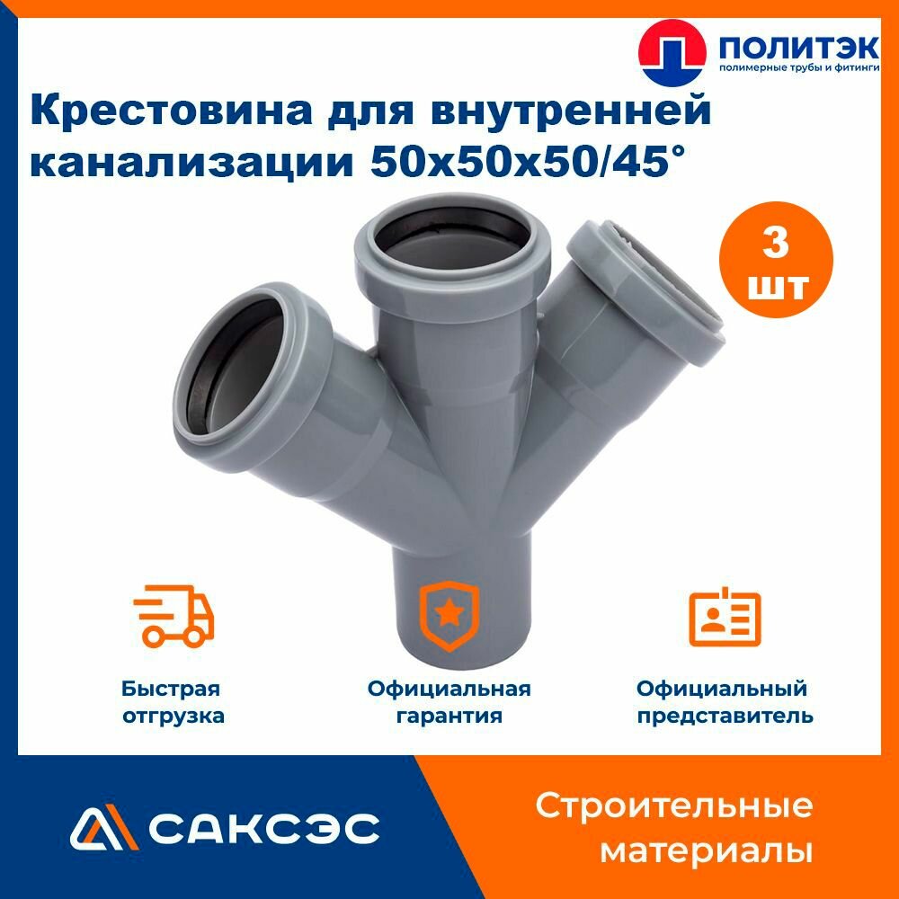 Крестовина одноплоскостная для внутренней канализации 50x50x50/45 полипропиленовая, Политэк, 3шт. / Крестовина канализационная 50 50 50 интересное:
