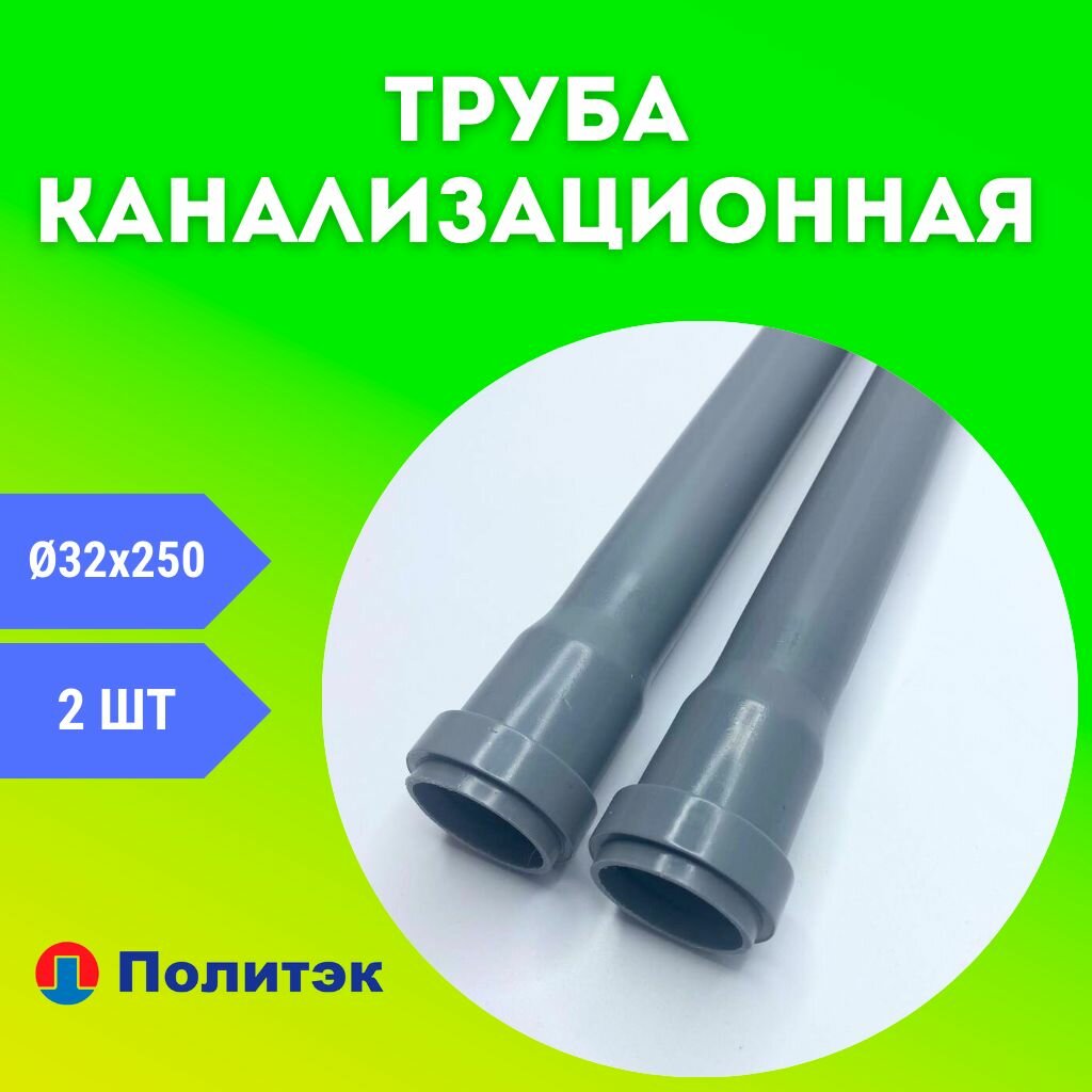 Купить Труба канализационная 32Х250 мм из полипропилена сантехническая (ПОЛИТЭК) 2шт.