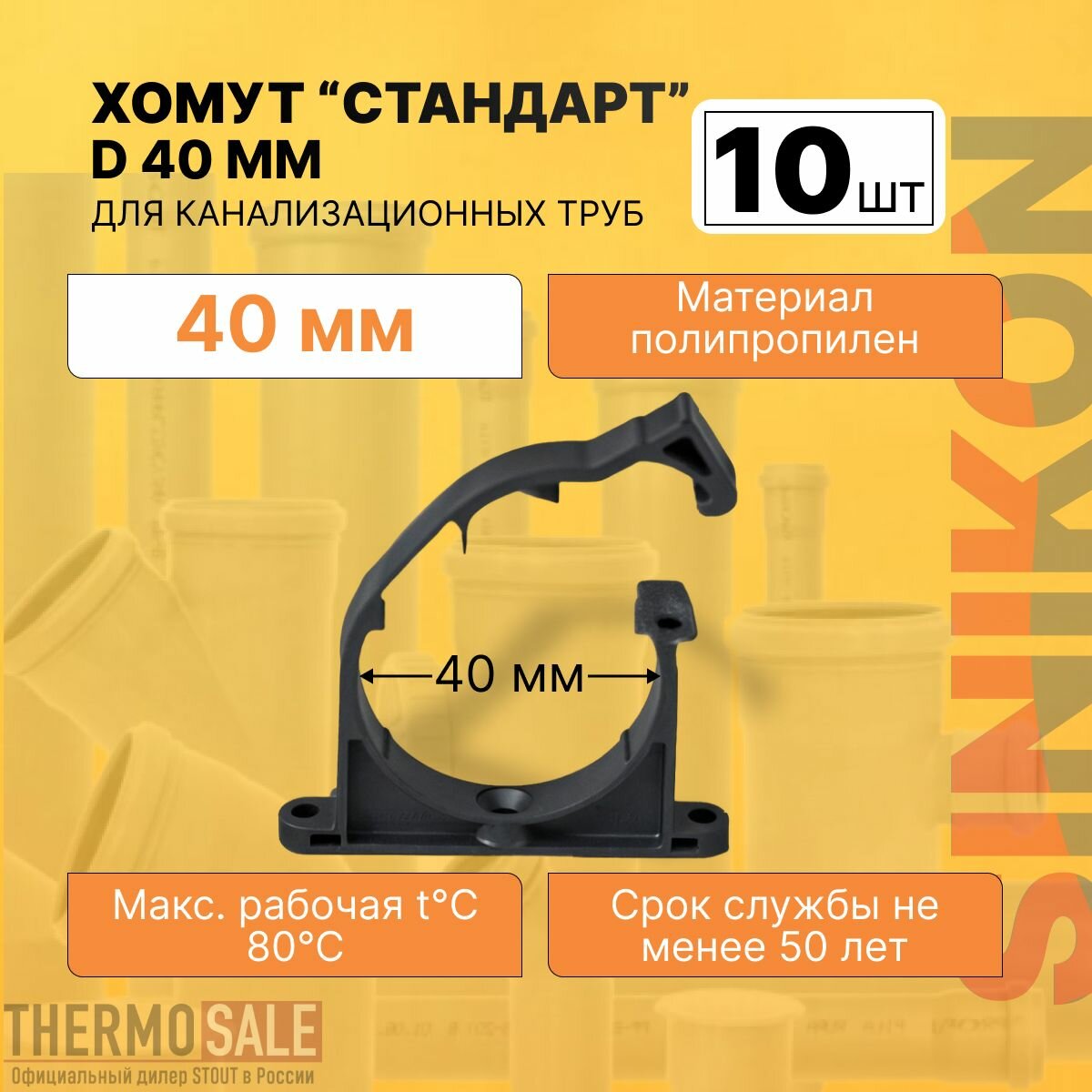 Хомут сантехнический для канализационных труб 10 шт стандарт D 40 мм крепление цвет серый Sinikon интересное: