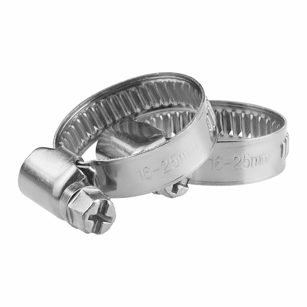 Хомут обжимной металлический 16-25 мм для шланга и труб, червячный, 2 шт