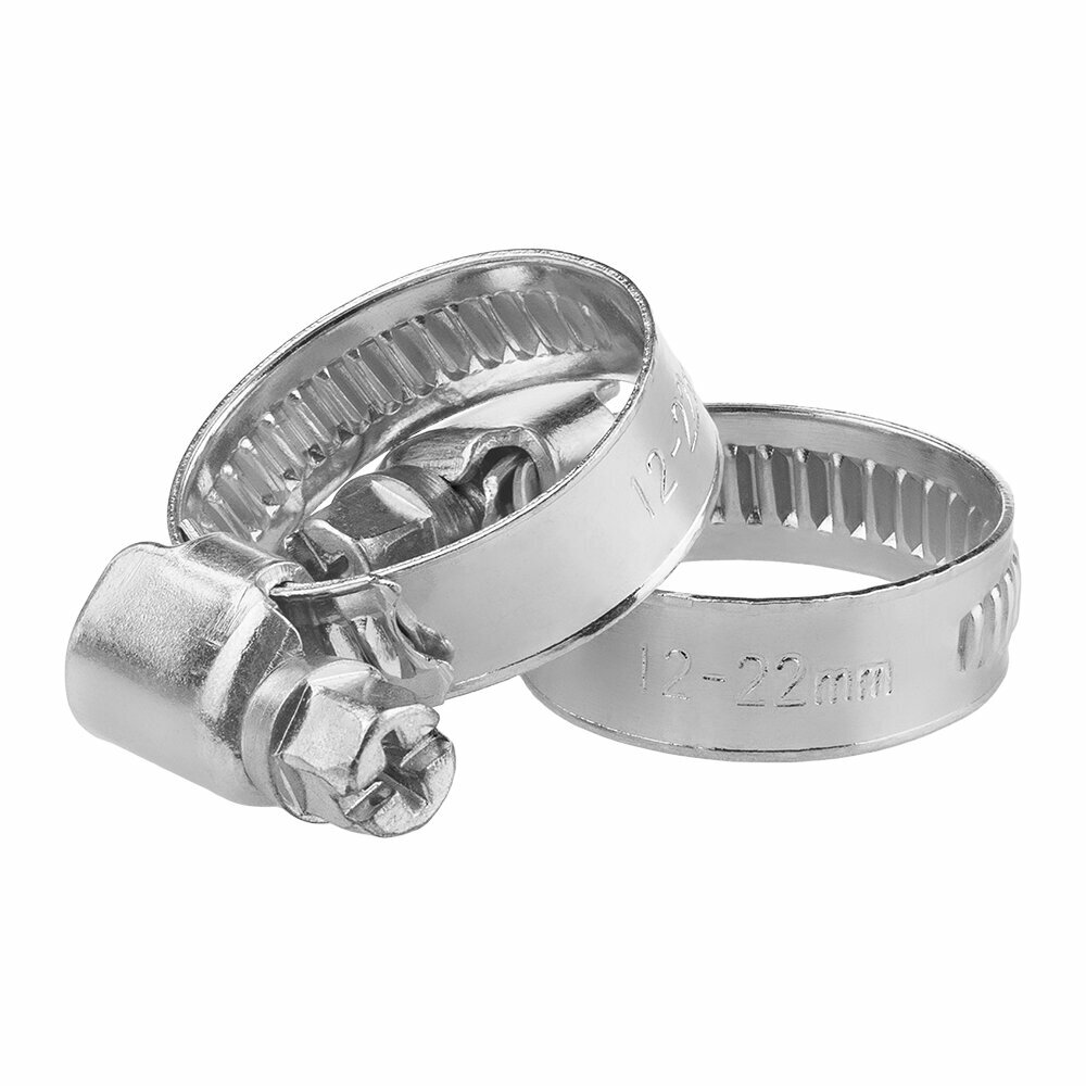 Хомут обжимной металлический 12-20 мм для шланга и труб, червячный, 2 шт