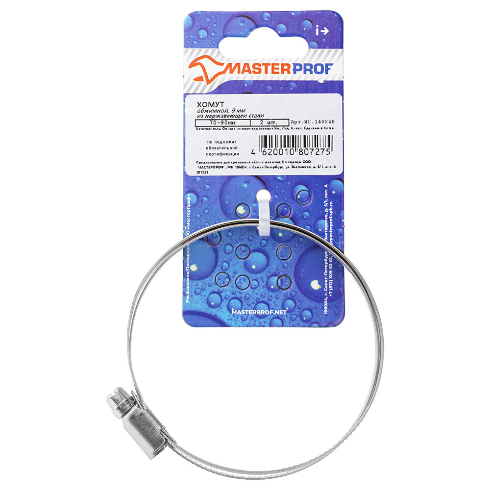 Купить Хомут обжимной металлический 70-90 мм для шланга и труб, червячный, 2 шт