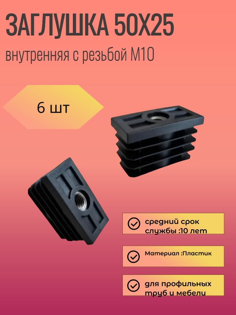 Заглушка 50х25 мм с резьбой М10 для профильной трубы пластиковая, 6 шт интересное: