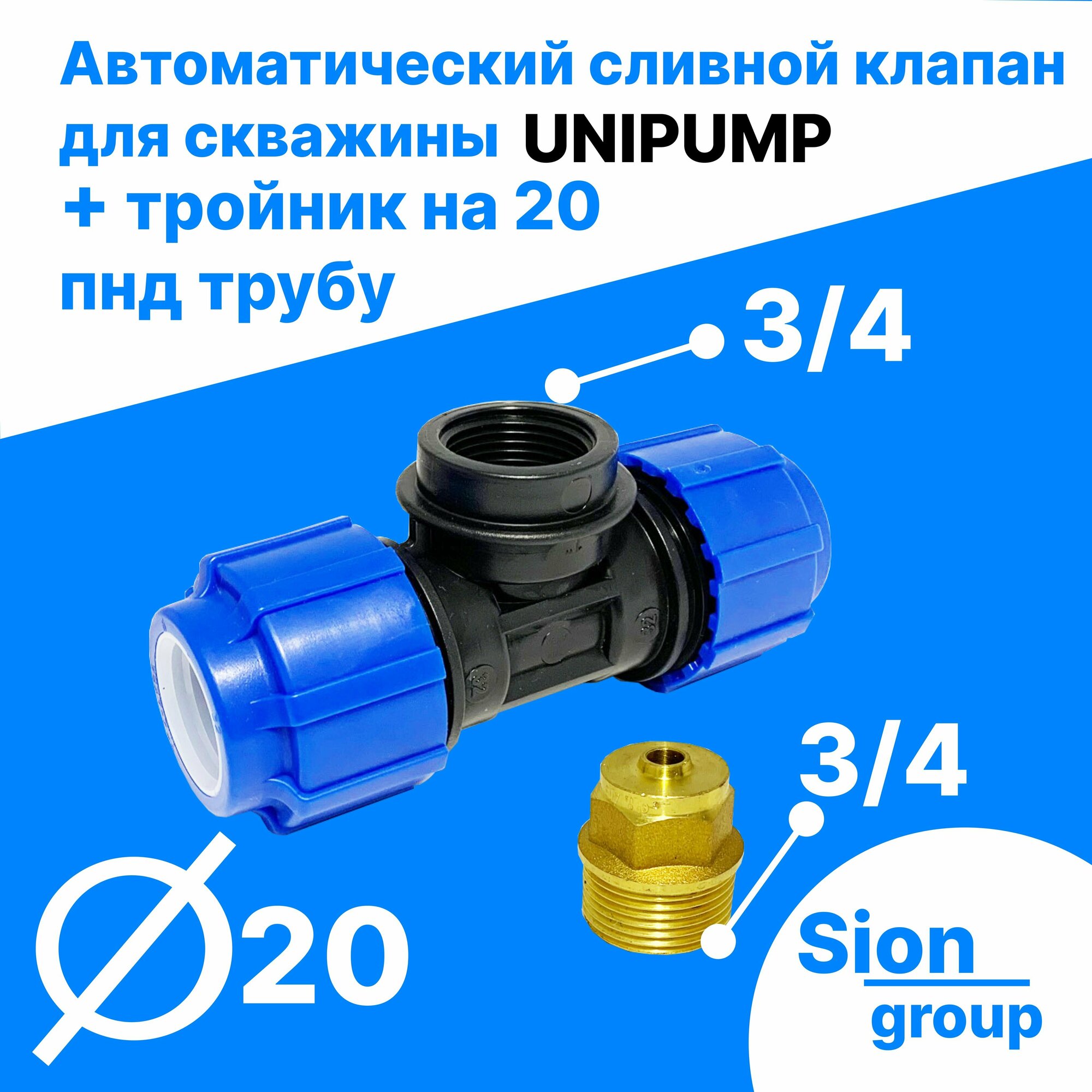 Купить Автоматический сливной клапан для скважины - 3/4" (+ тройник на 20 пнд трубу) - UNIPUMP