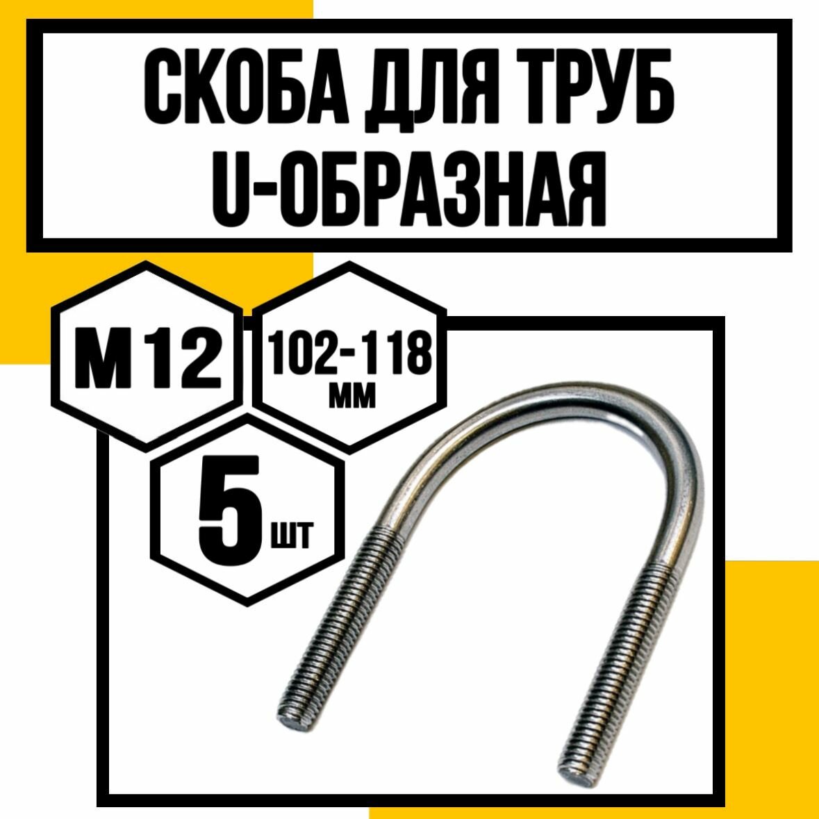 Купить Скоба металлич. штамп. д/труб U-образная м12 ф4" /102-118мм/