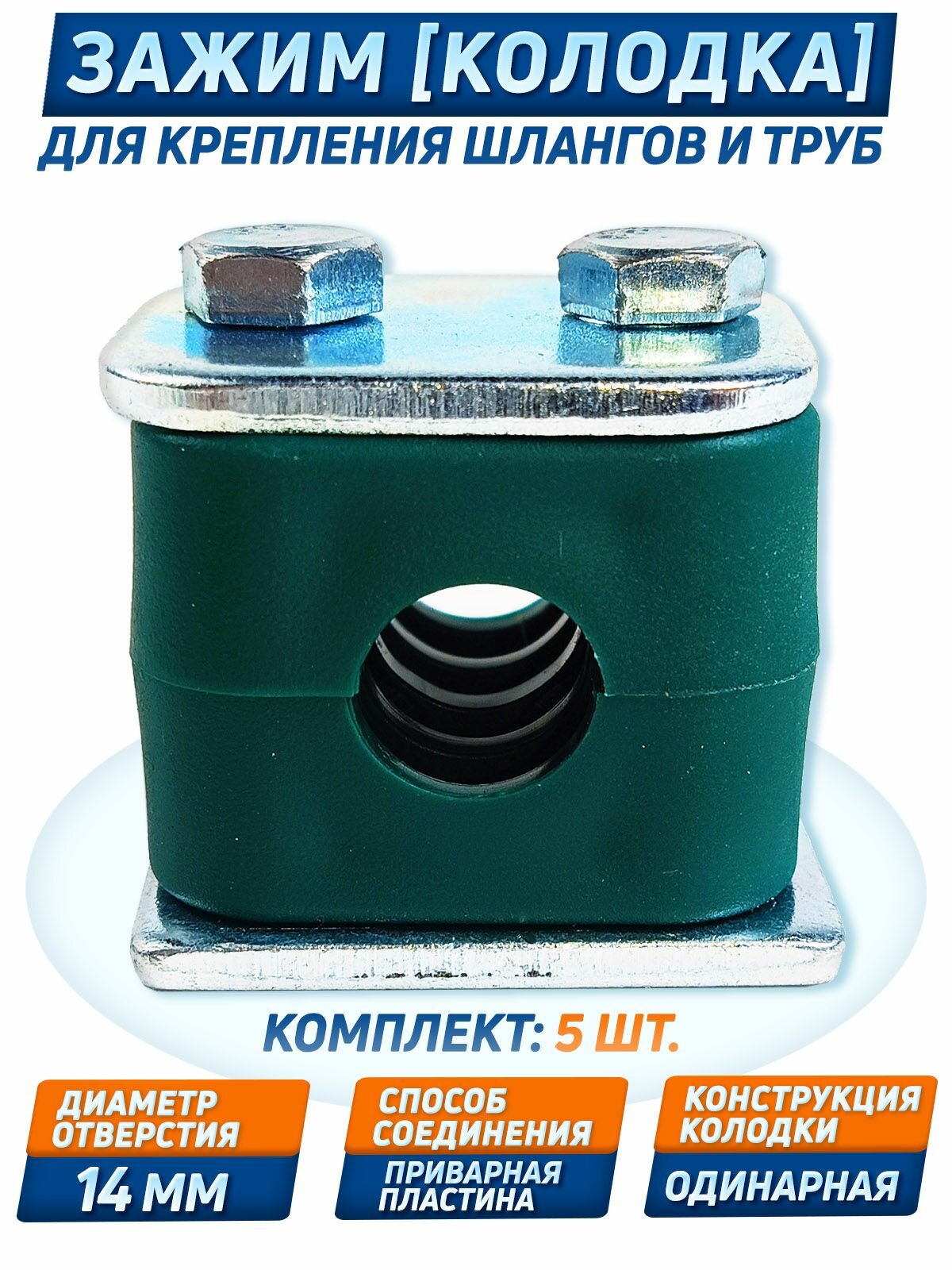 Купить Крепление гидравлических труб и РВД DIN 3015, 14 мм, одинарный, 5 шт.