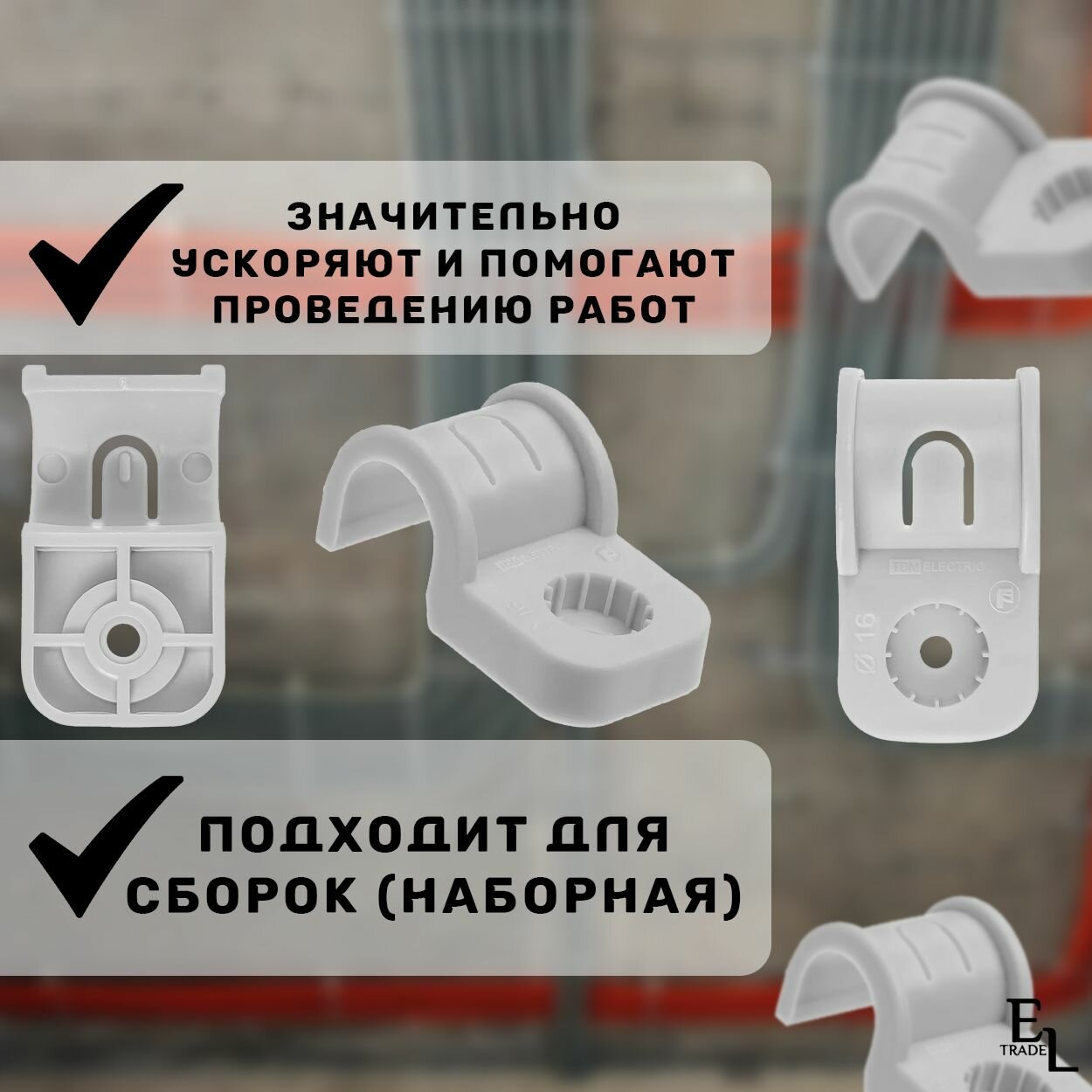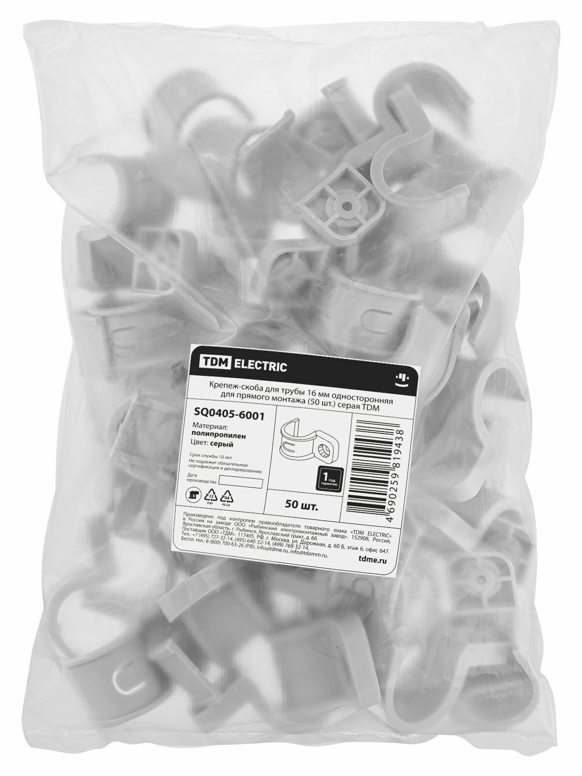 Крепеж скоба для трубы и гофры 16 мм односторонняя для прямого монтажа, 50 штук, серая TDM интересное: