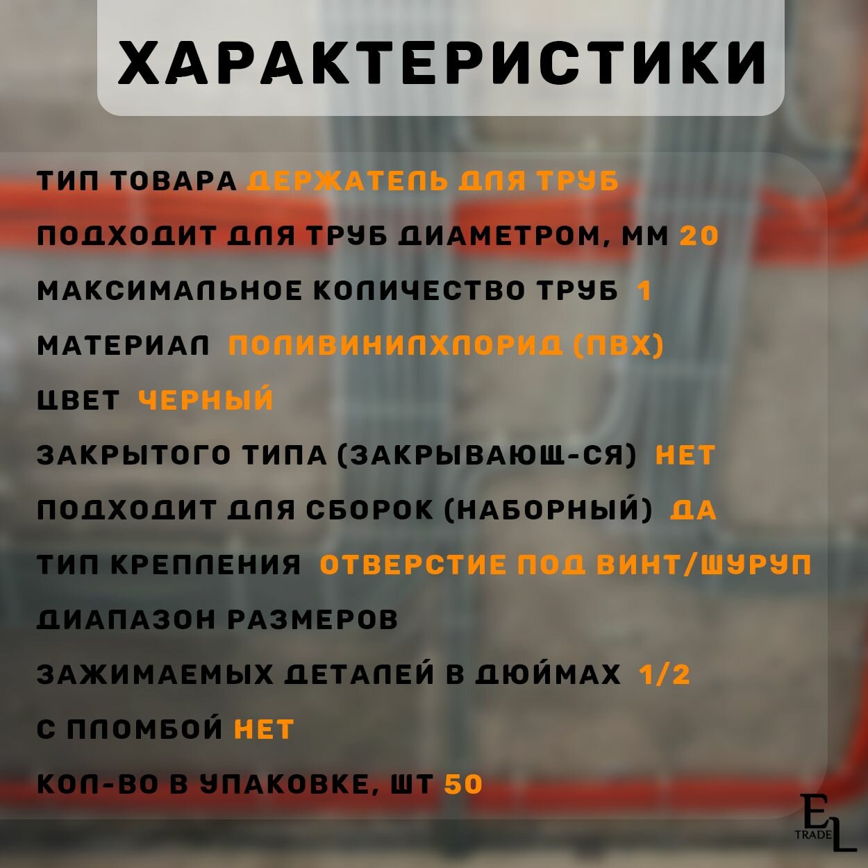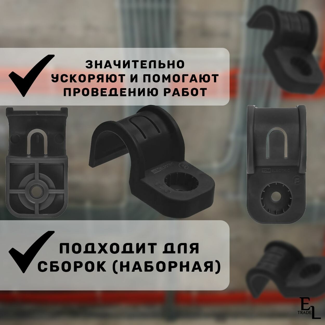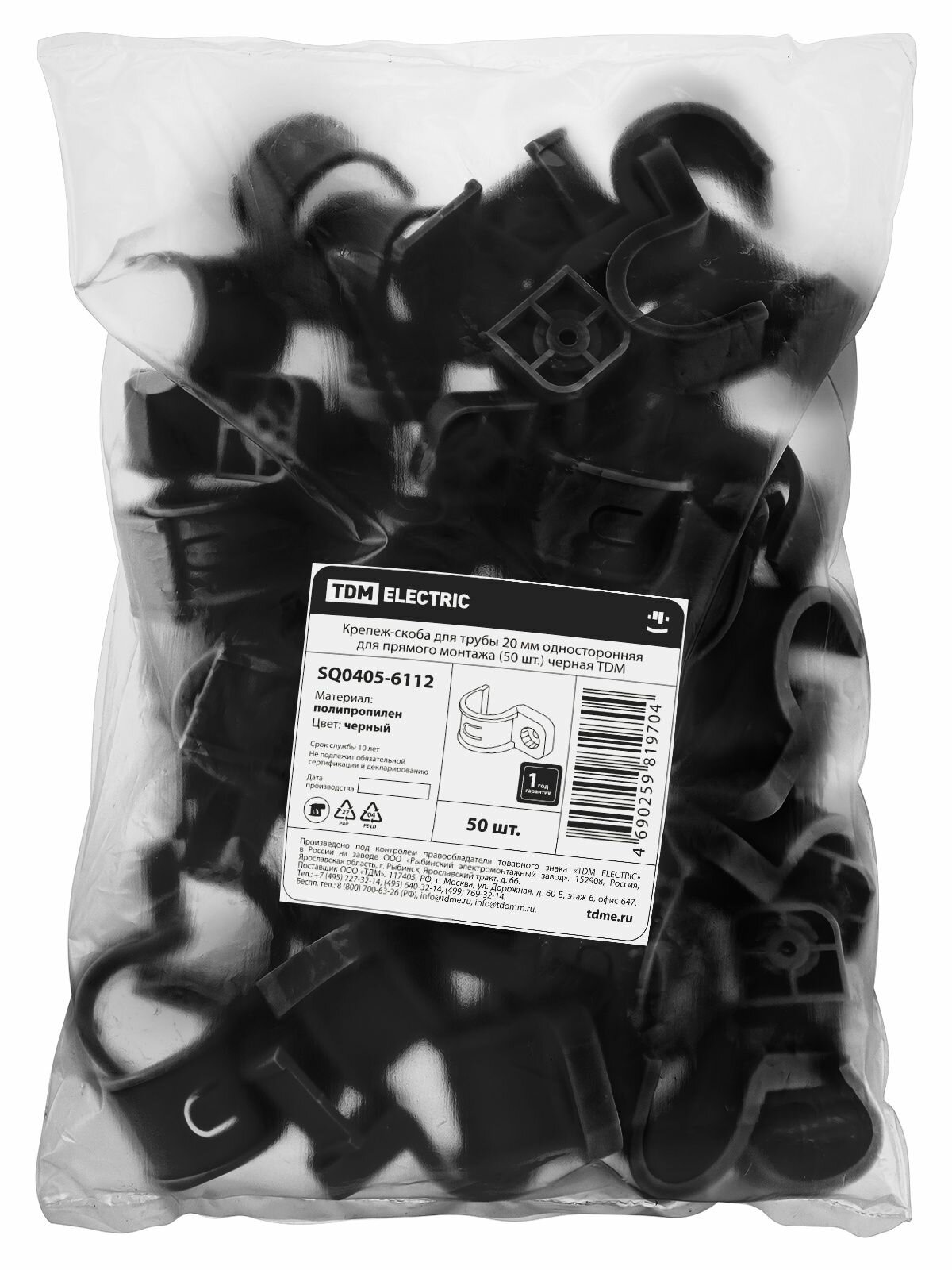 Крепеж скоба для трубы и гофры 20 мм односторонняя для прямого монтажа, 50 штук, черная TDM интересное: