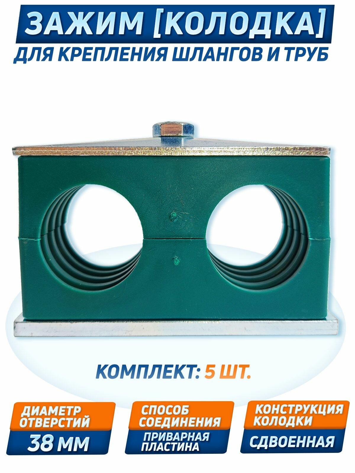 Купить Крепление гидравлических труб и РВД DIN 3015, 38 мм, сдвоенный, 5 шт.