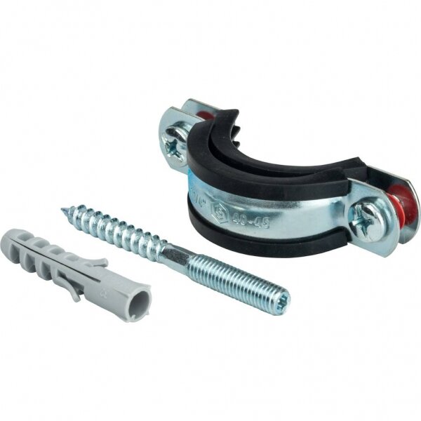 Купить STOUT Хомут для труб, комплект: хомут+шпилька шуруп +дюбель пластиковый 1 1/4"(40-45)