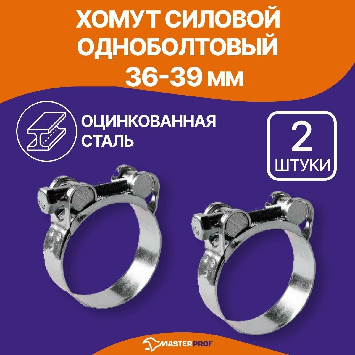 Купить Хомут силовой одноболтовый 36-39 мм, шарнирный быстросъемный, металлический, набор 2 шт