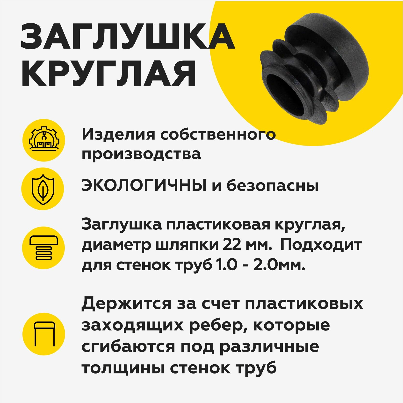 СохранитьПластиковая заглушка с диаметром шляпки 22 мм, для круглых труб с наружным размером 22 мм (10шт) интересное: