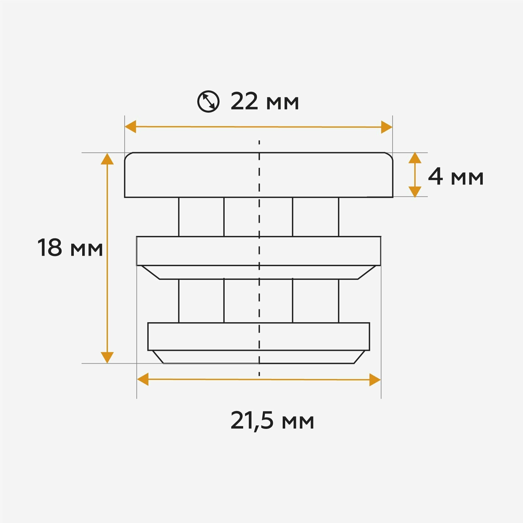 Пластиковая заглушка с диаметром шляпки 22 мм, для круглых труб с наружным размером 22 мм (30шт)