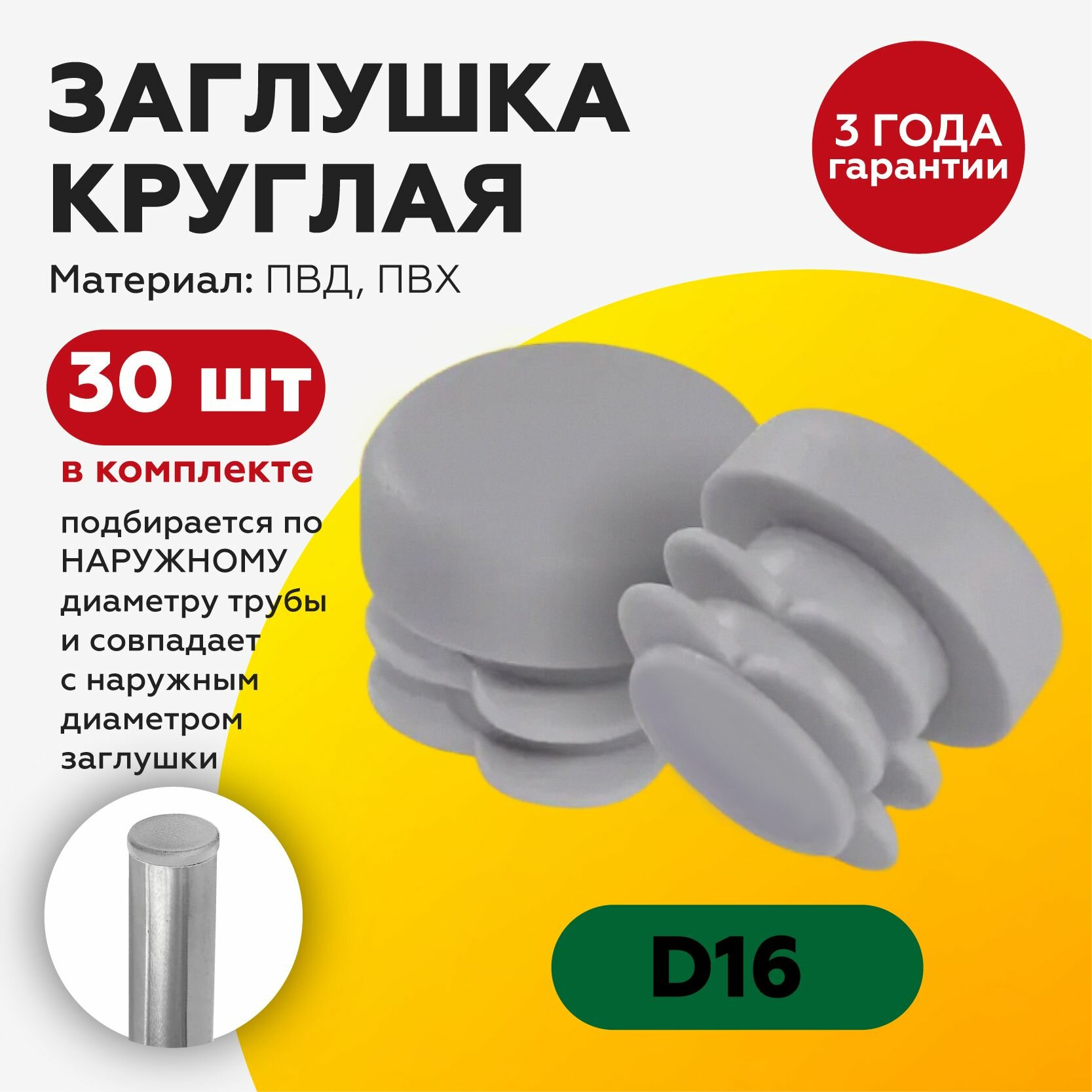 СохранитьПластиковая заглушка для круглых труб 16 мм, серого цвета (30шт) интересное: