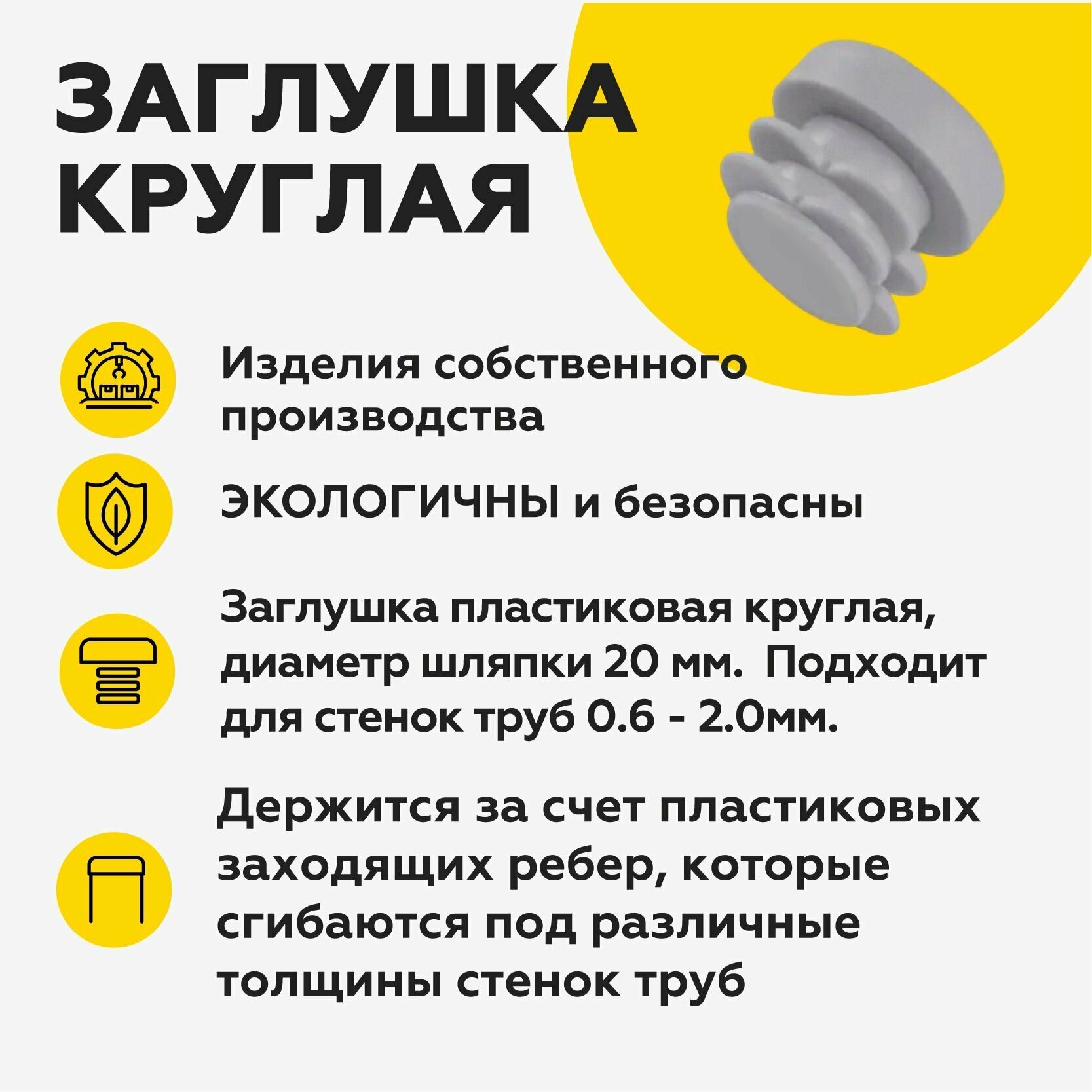 СохранитьПластиковая заглушка для круглых труб 20 мм, серого цвета (30шт) интересное: