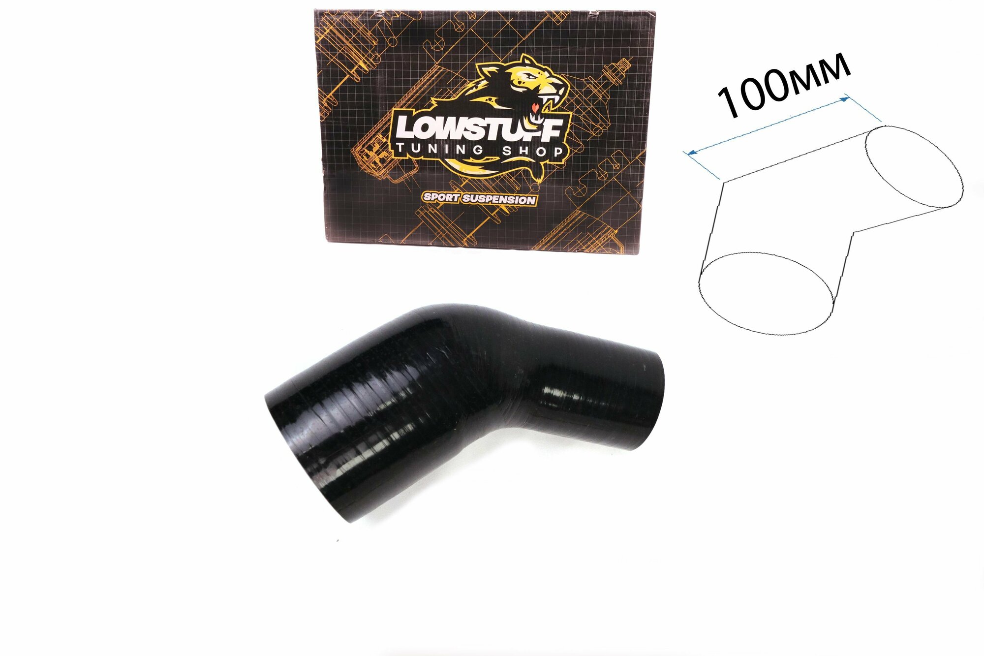 Патрубок силиконовый угол 45 градусов переходной диаметр 63 мм в 51 мм длина 100 мм стенка 5мм черный