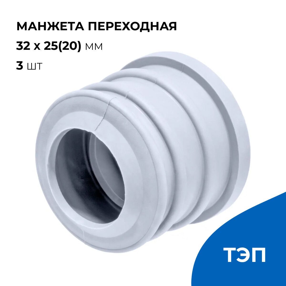 Купить Манжета для подключения сифонов и гофрошлангов к патрубкам из ПВХ 32 х 25(20) мм, серая, 3 шт.