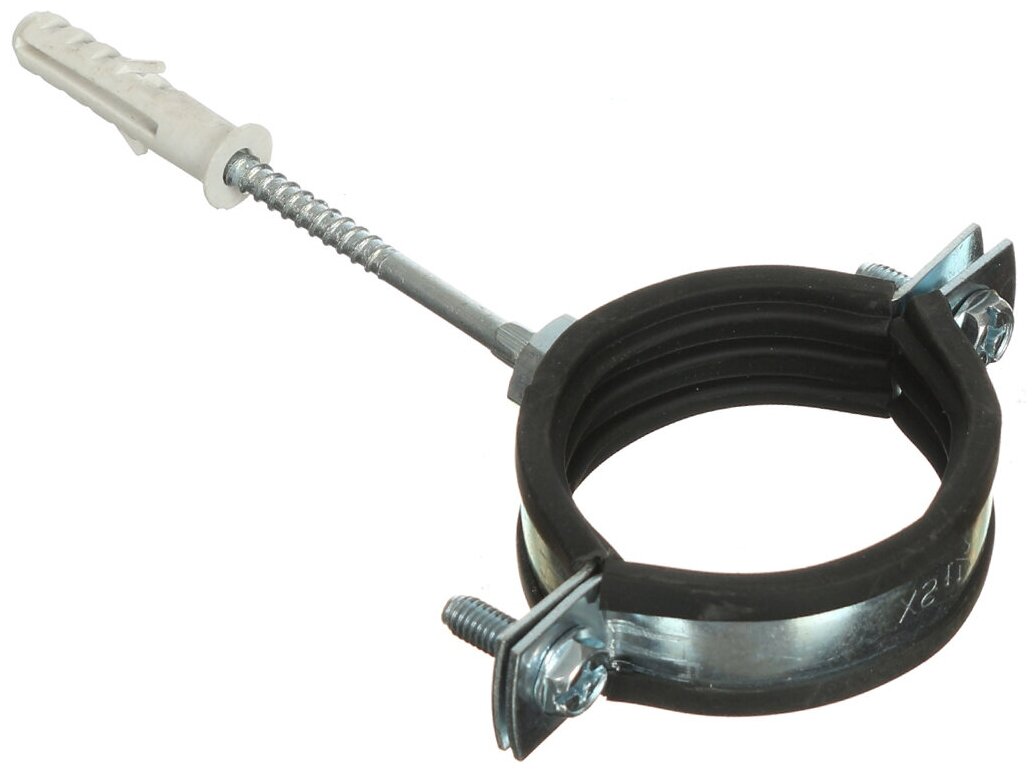 Купить Хомут сантехнический 1 1/2", 47-51 мм, в комплекте шпилька сантех. М8x80 и дюбель