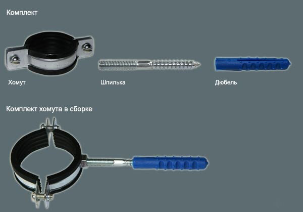 Хомут сантехнический 1 1/2", 47-51 мм, в комплекте шпилька сантех. М8x80 и дюбель интересное: