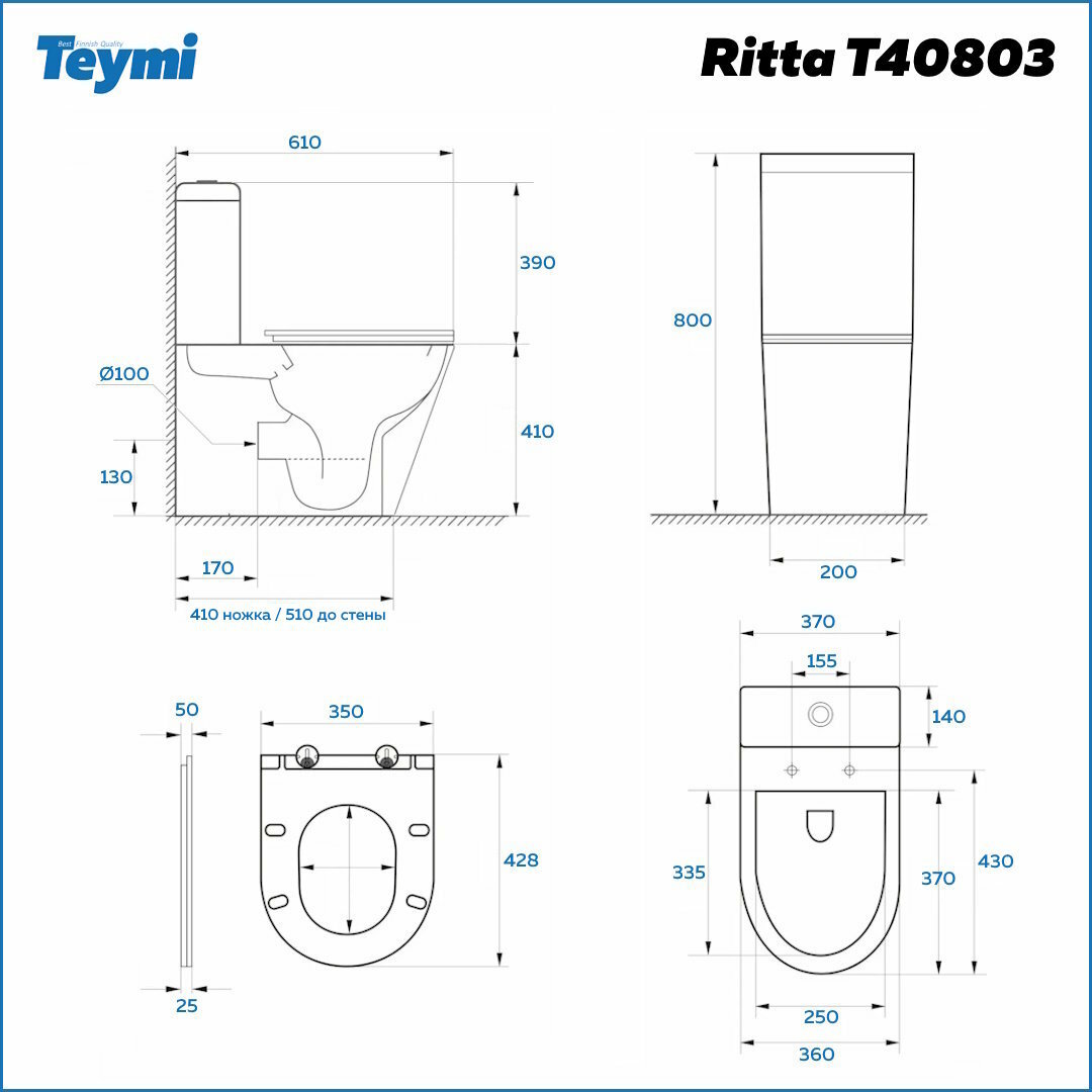 Унитаз напольный безободковый с быстросъемным сиденьем микролифт Teymi Ritta T40803 интересное: