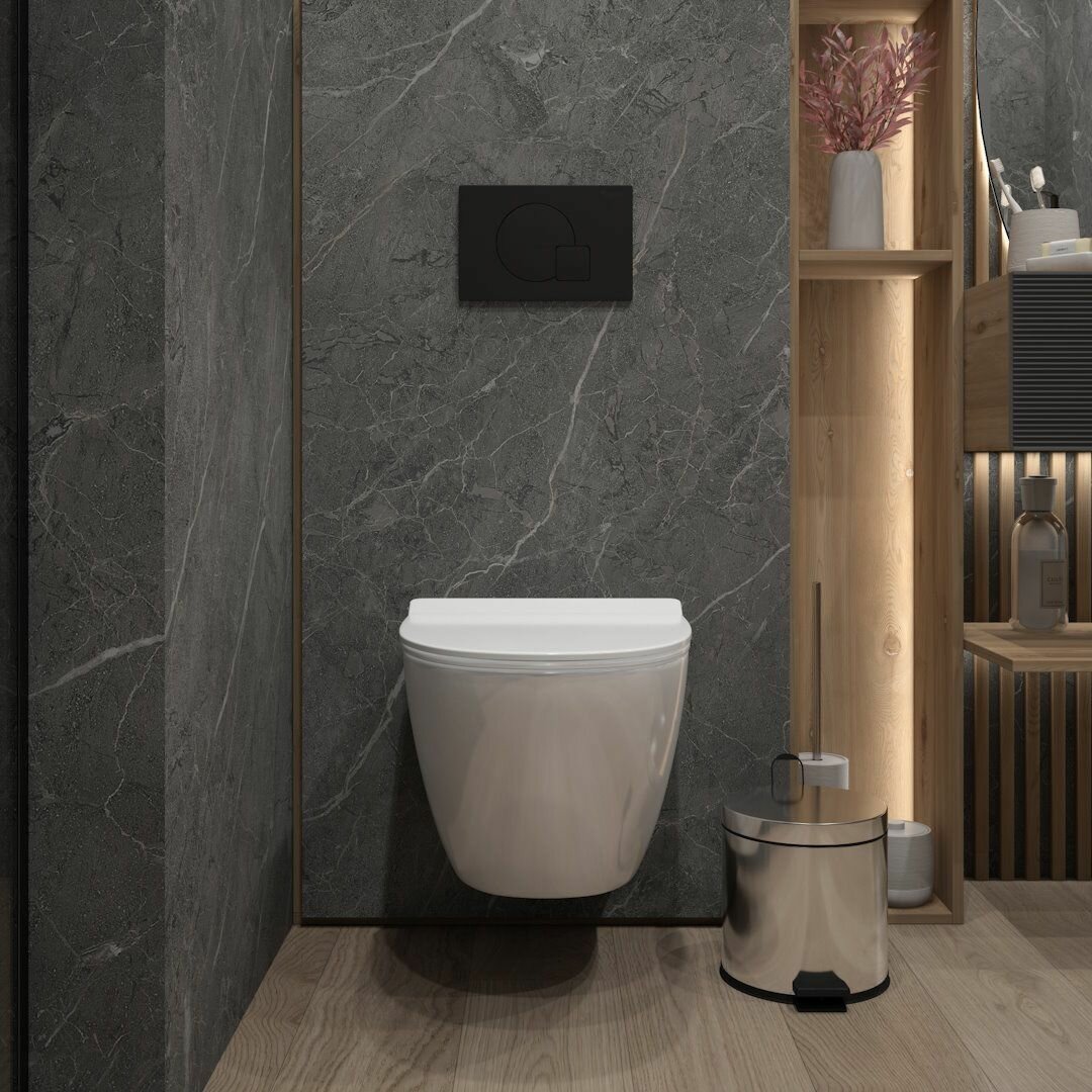 Унитаз подвесной торнадо безободковый с быстросъемным сиденьем микролифт Teymi Lina Pro Vortex Black черный матовый T40114