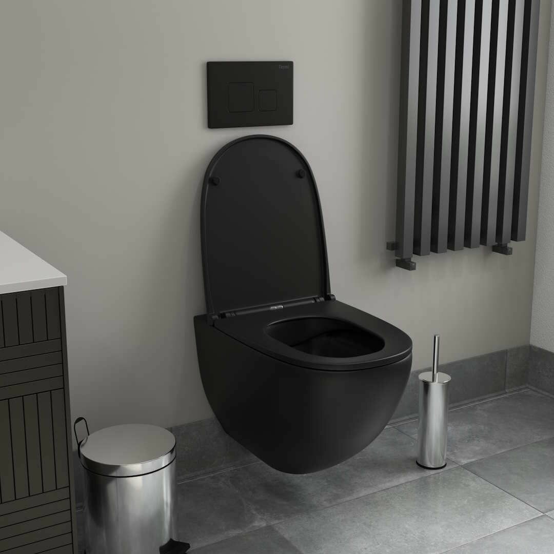 Унитаз подвесной торнадо безободковый с быстросъемным сиденьем микролифт Teymi Lina Pro Vortex Black черный матовый T40114