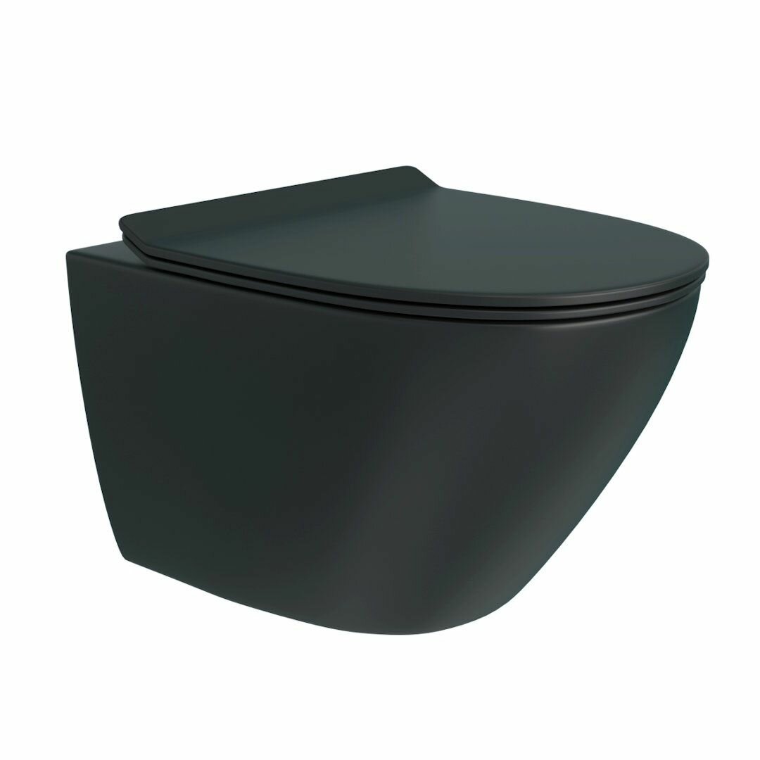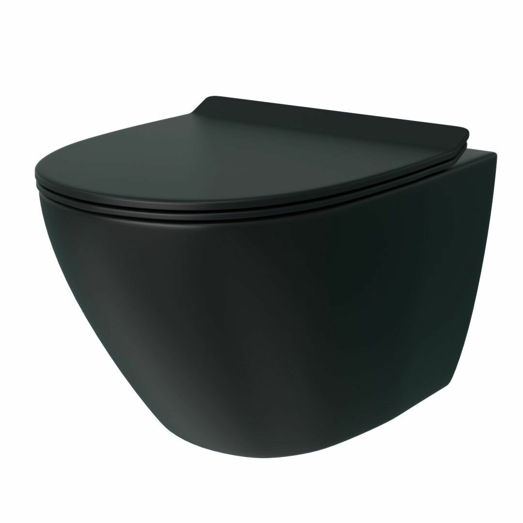 Унитаз подвесной безободковый с быстросъемным сиденьем микролифт Teymi Lina S Black черный матовый T40111
