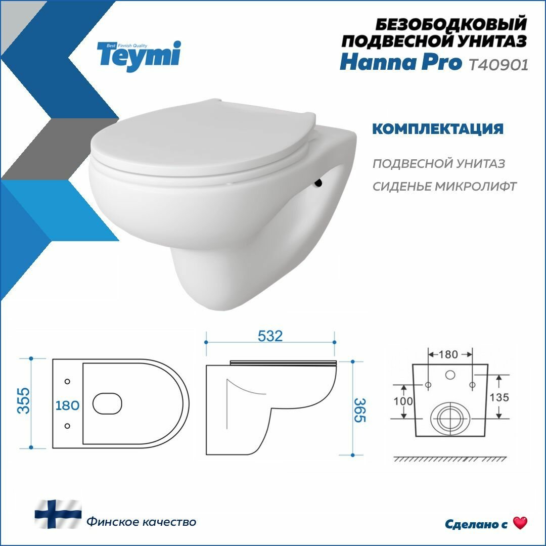 СохранитьУнитаз подвесной безободковый с сиденьем микролифт Teymi Hanna Pro T40901 интересное: