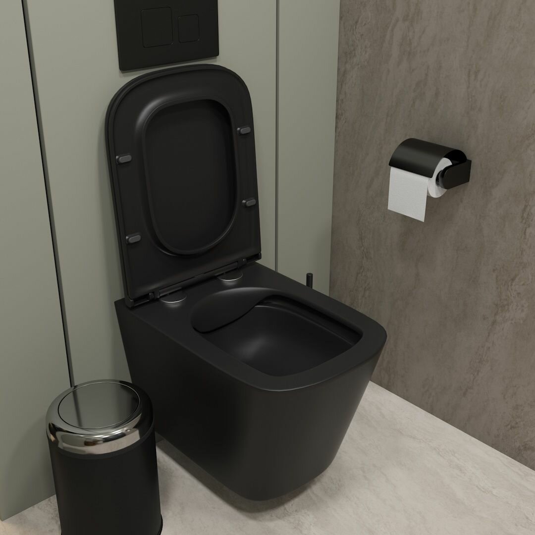Унитаз подвесной торнадо безободковый с быстросъемным сиденьем микролифт Teymi Lina Pro Vortex Black черный матовый T40114