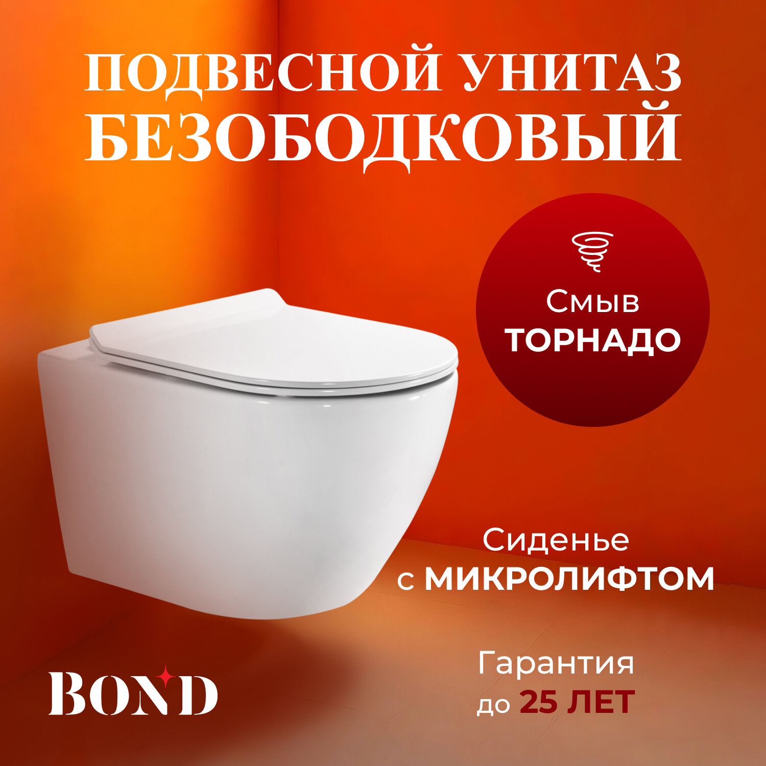 Унитаз подвесной со смывом торнадо безободковый белый с сиденьем микролифт BOND Oval F12-10 интересное: