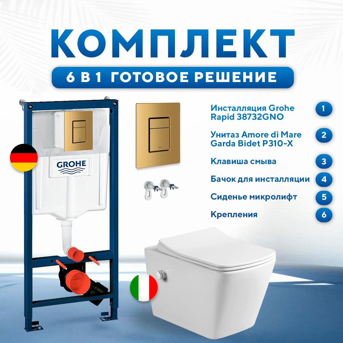 Инсталляция с унитазом 6 в 1: инсталляция Grohe 38772001 + унитаз Amore di Mare Garda Bidet P310-X + сиденье микролифт
