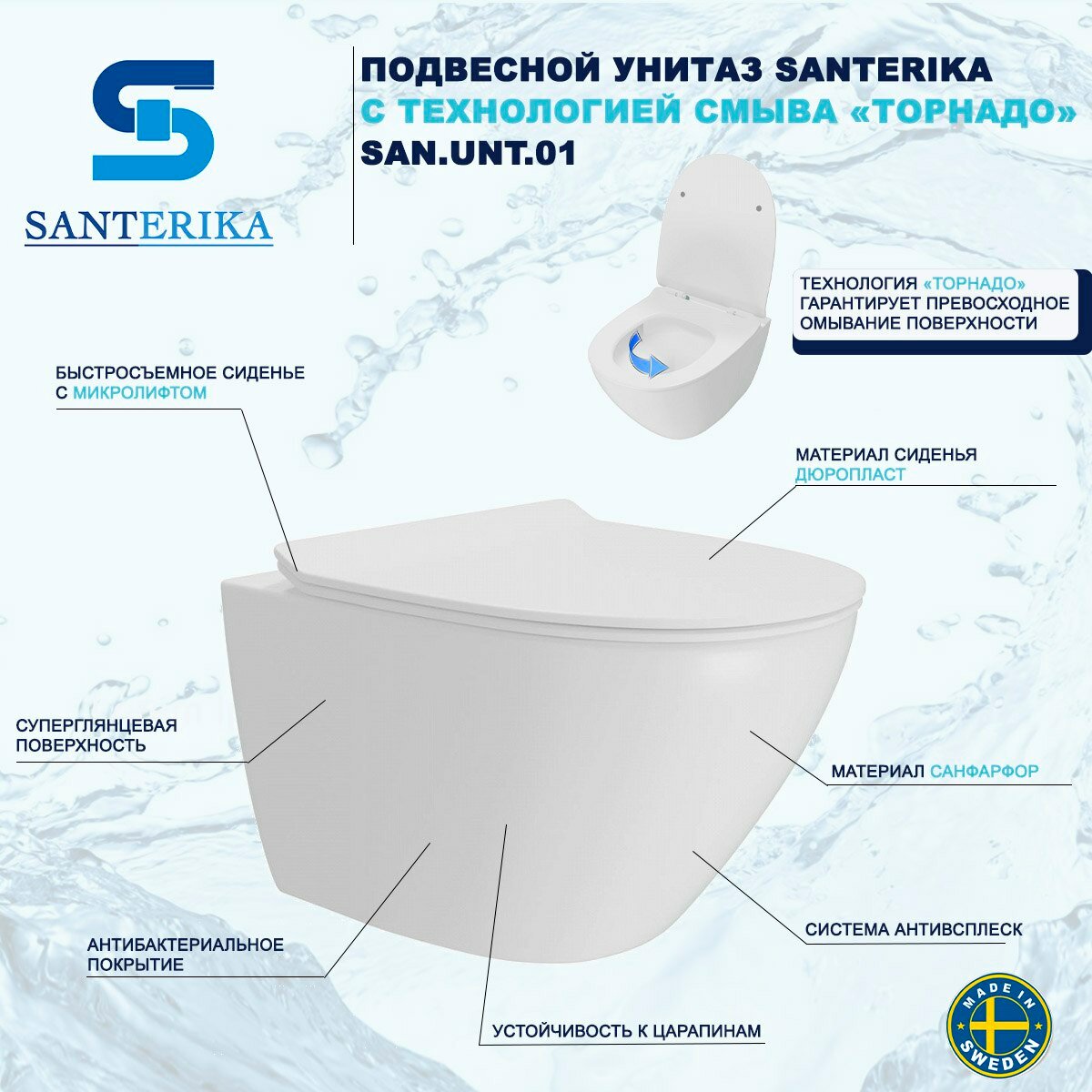 Инсталляция Tece TECEnow 9400412 с подвесным унитазом Santerika SAN. UNT.01, смыв "Торнадо", сиденье микролифт
