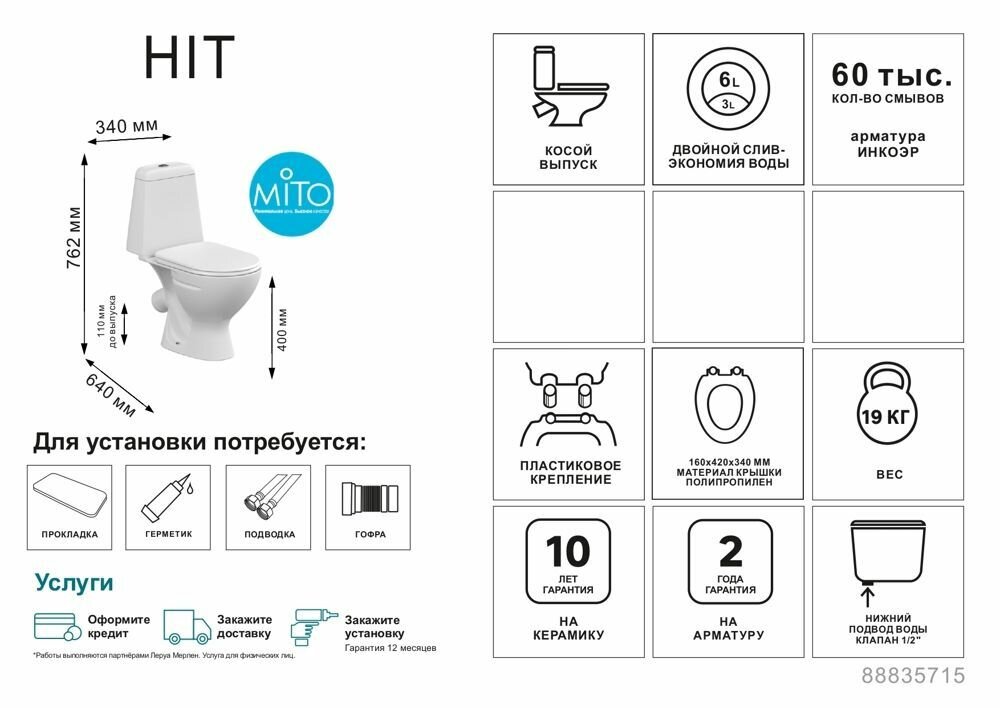 Церсанит Mito Hit унитаз-компакт с косым выпуском белый / CERSANIT Mito Hit унитаз-компакт с косым выпуском двойной слив белый интересное:
