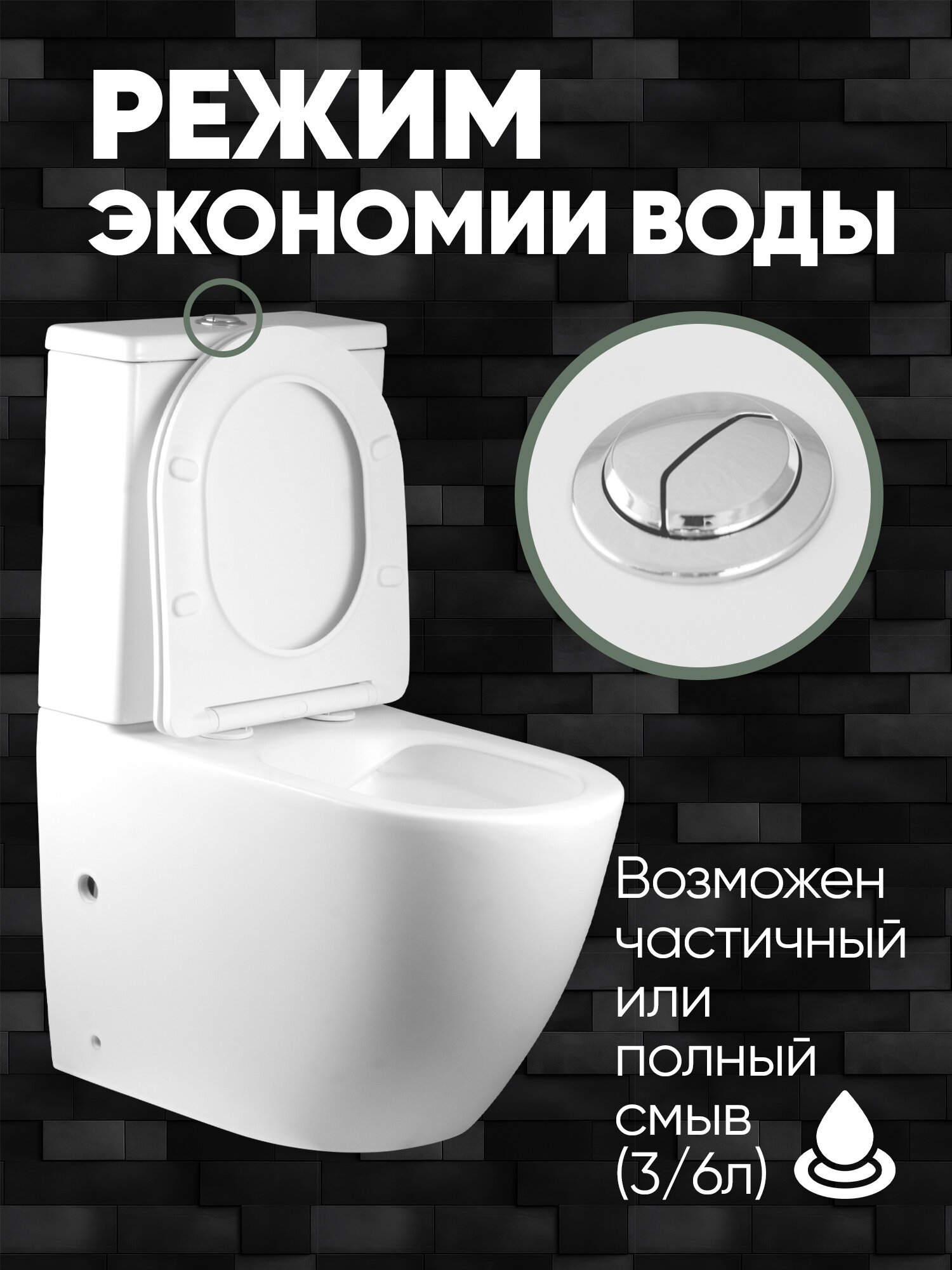 Унитаз-компакт безободковый WEST MW (сиденье дюропласт с микролифтом, арматура 2-х режимная) белый матовый интересное: