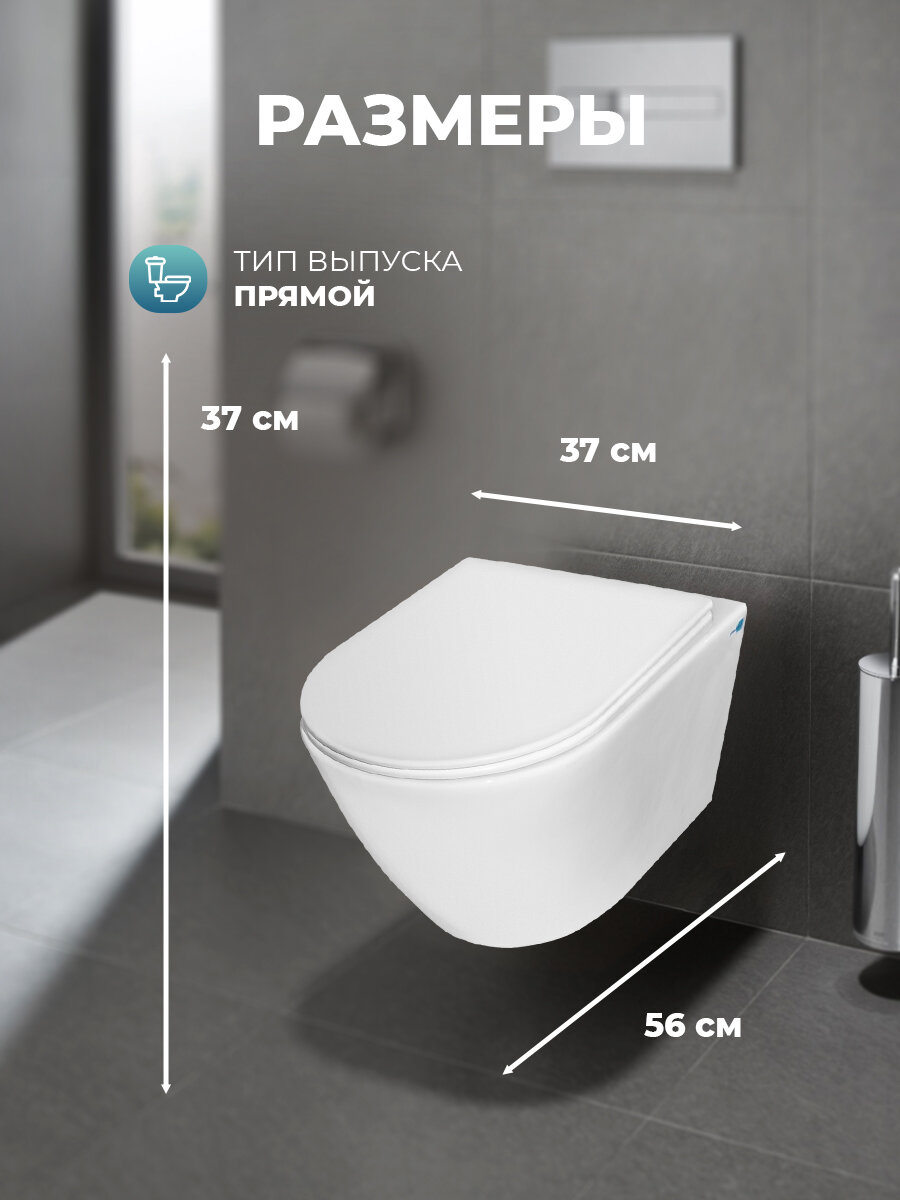 Купить Унитаз подвесной H048B безободковый, с сиденьем из дюропласта, микролифт, белый