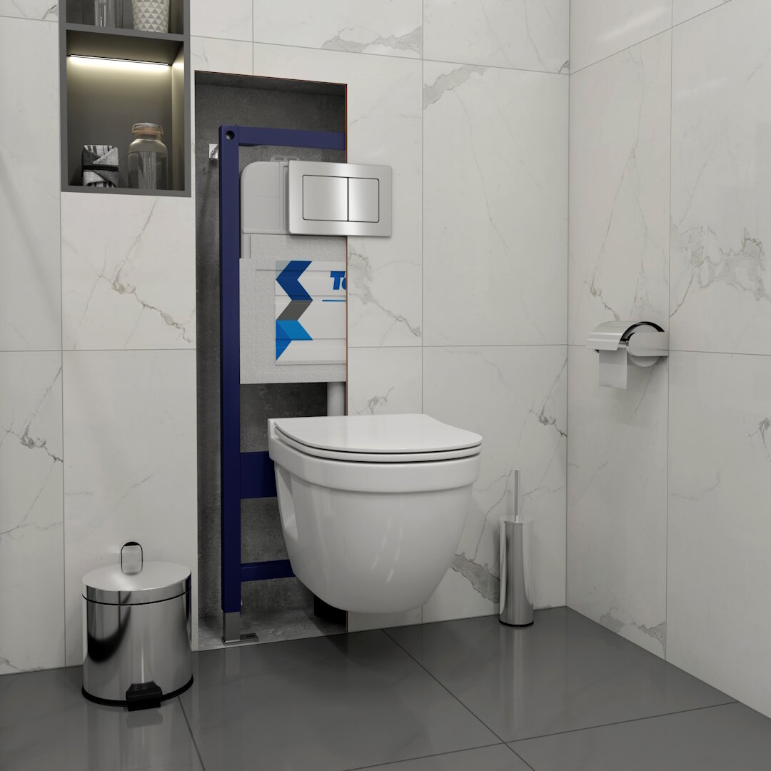 Инсталляция с унитазом комплект 5 в 1 Teymi унитаз подвесной безободковый Vitra Pro кнопка нержавеющая сталь F13479