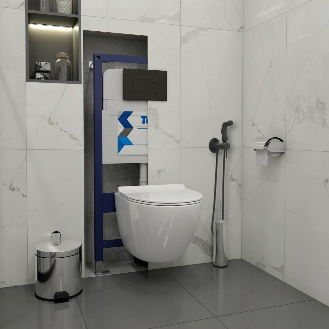 Ниже Вы можете прочитать отзывы на Инсталляция с унитазом комплект 6 в 1 Teymi унитаз подвесной безободковый Lina Pro кнопка черная гигиенический душ черный F08493, ознакомится с подробными характеристиками, посмотреть интересные обзоры и фотографии на Инсталляция с унитазом комплект 6 в 1 Teymi унитаз подвесной безободковый Lina Pro кнопка черная гигиенический душ черный F08493.