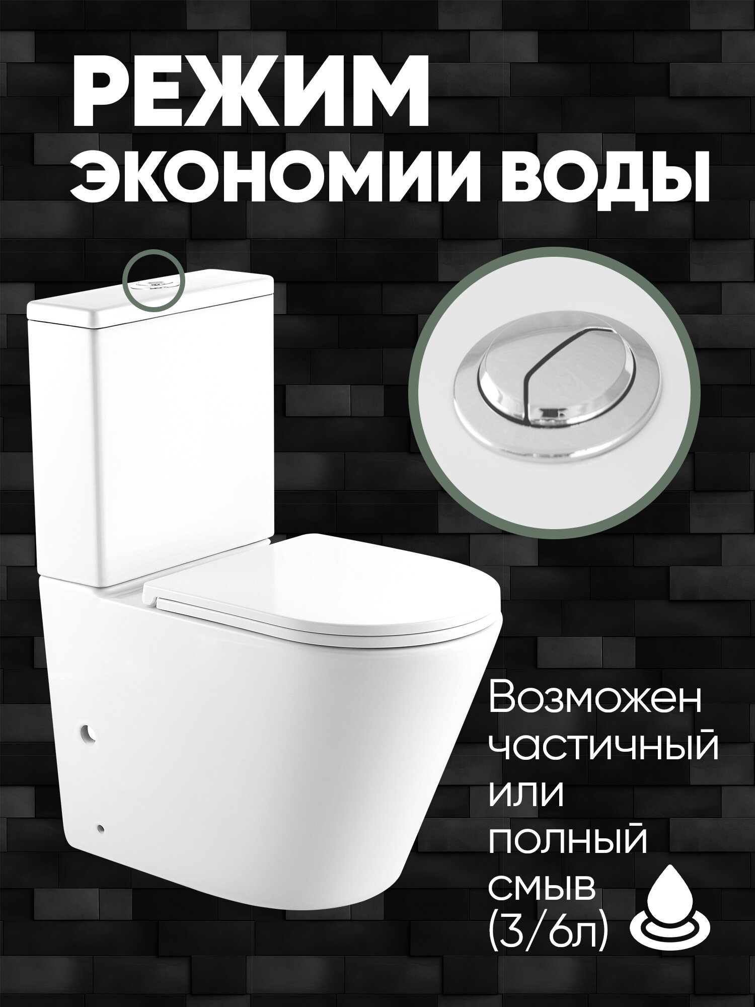 Унитаз-компакт безободковый SLIM (620*360*820мм, сиденье дюропласт с микролифтом, арматура 2-х режимная) белый интересное: