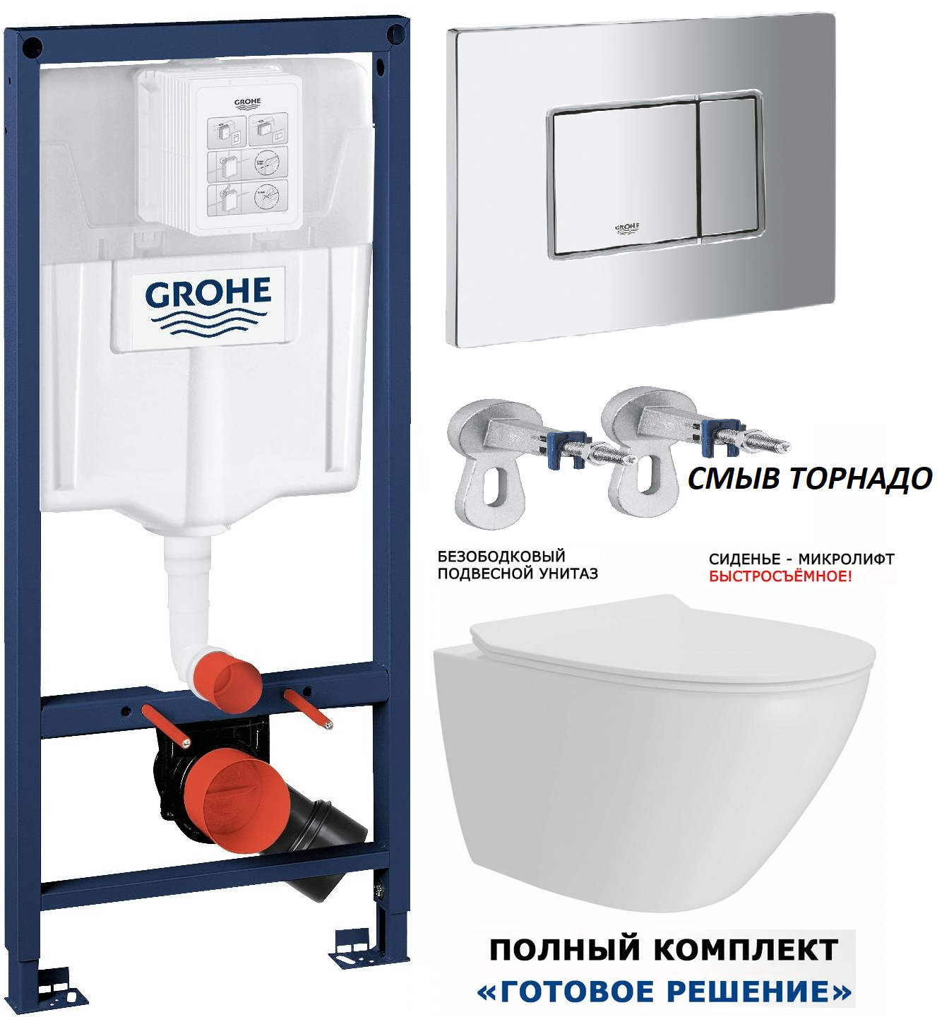 Комплект: Инсталляция Grohe Rapid SL 38732000 хром кв. горизонт.+ Унитаз подвес. Lengitown Luna с сиденьем интересное: