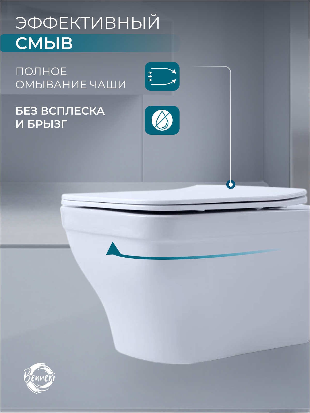 Комплект Инсталляция Benneri+унитаз подвесной Амадео безободковый, с микролифтом+кнопка смыва Benneri Luna черная