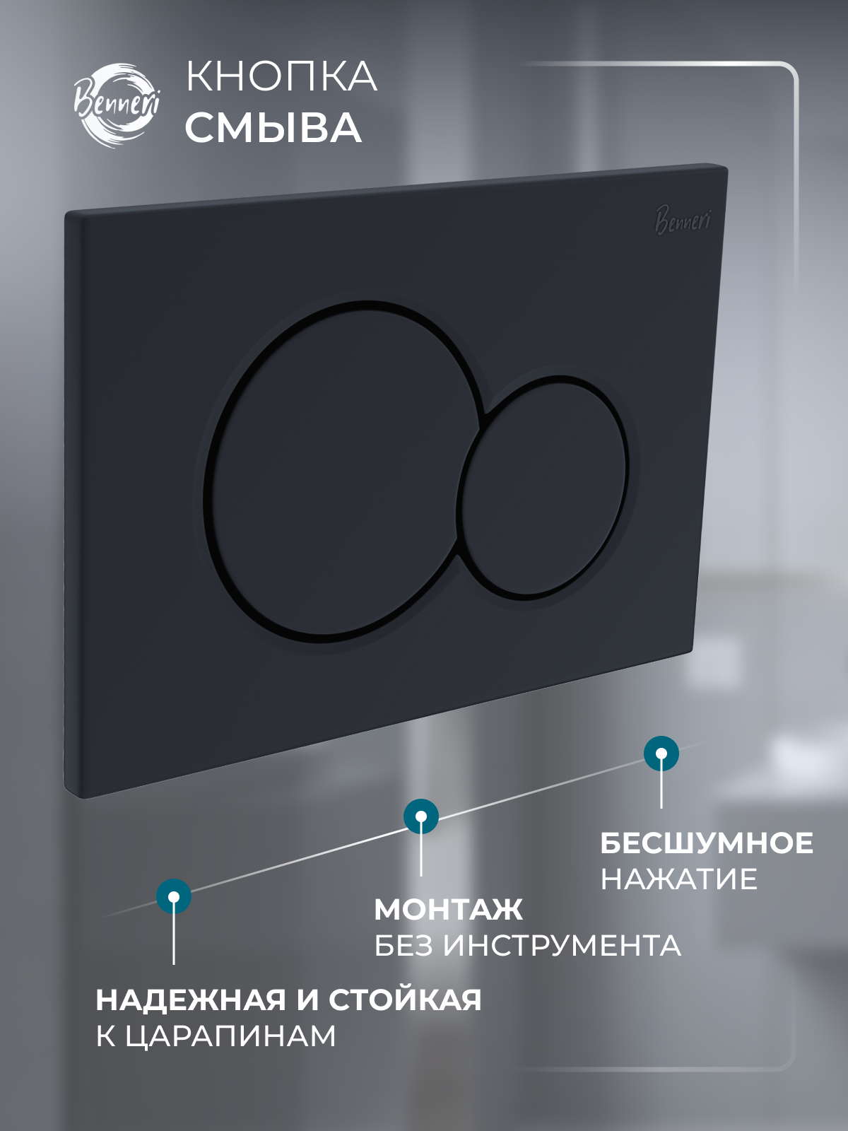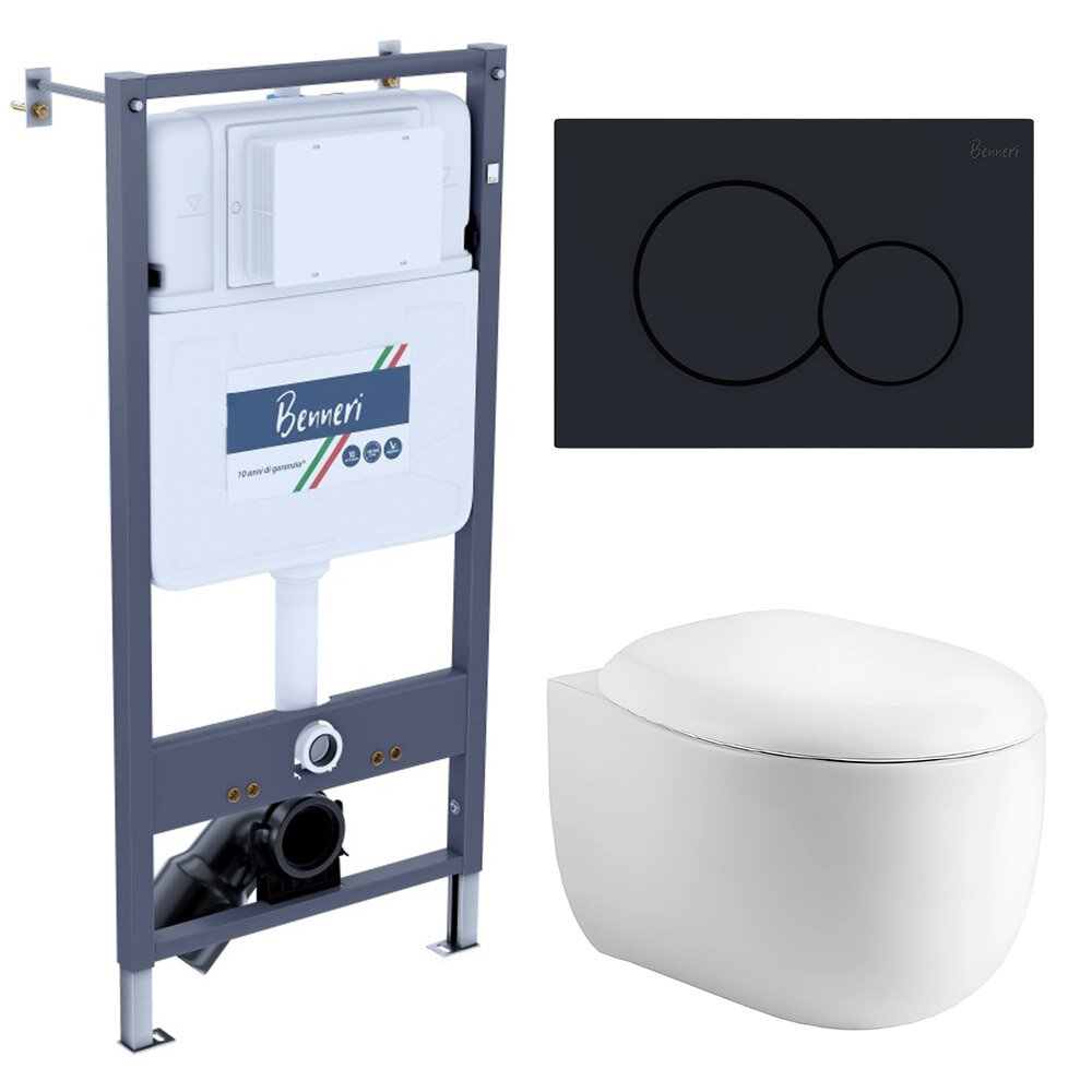 Комплект Инсталляция Benneri+унитаз подвесной Амадео безободковый, с микролифтом+кнопка смыва Benneri Luna черная