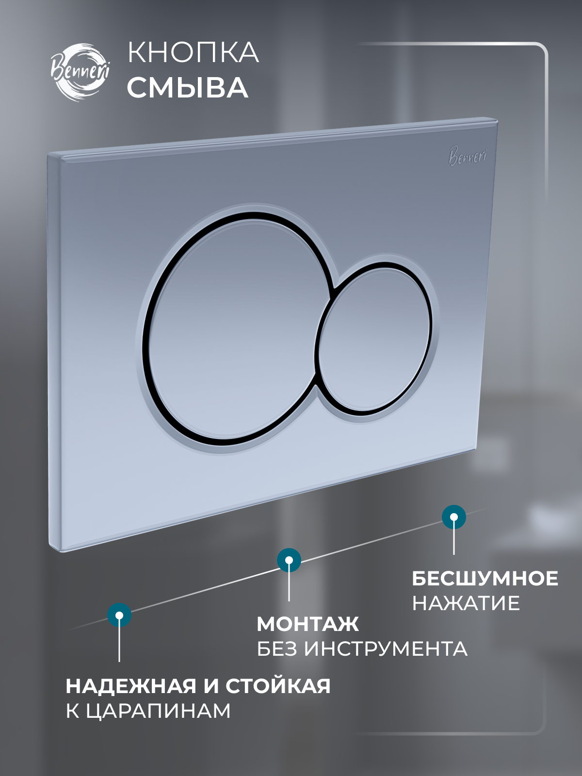 Комплект инсталляция Benneri+унитаз подвесной Aquatek Амадео безободковый, с микролифтом+кнопка смыва Mona серебристая