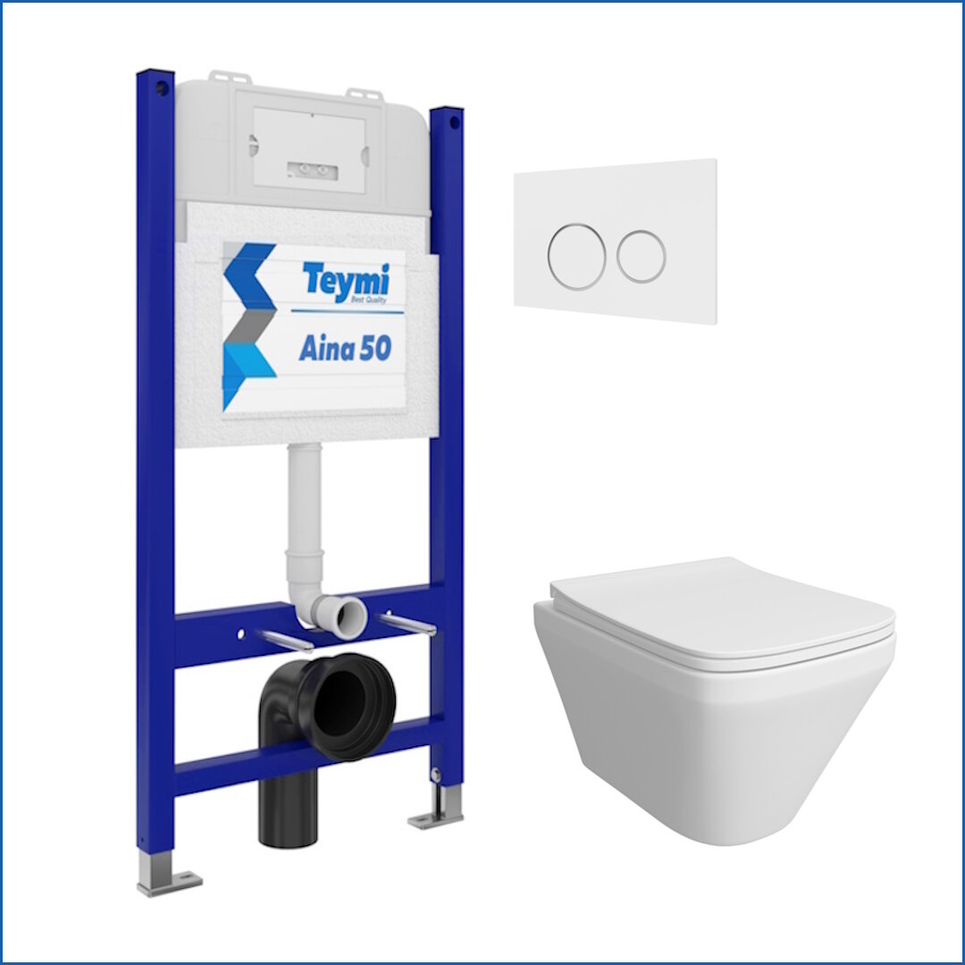 Инсталляция с унитазом комплект 5 в 1 Teymi унитаз подвесной безободковый Kati кнопка белая F00638
