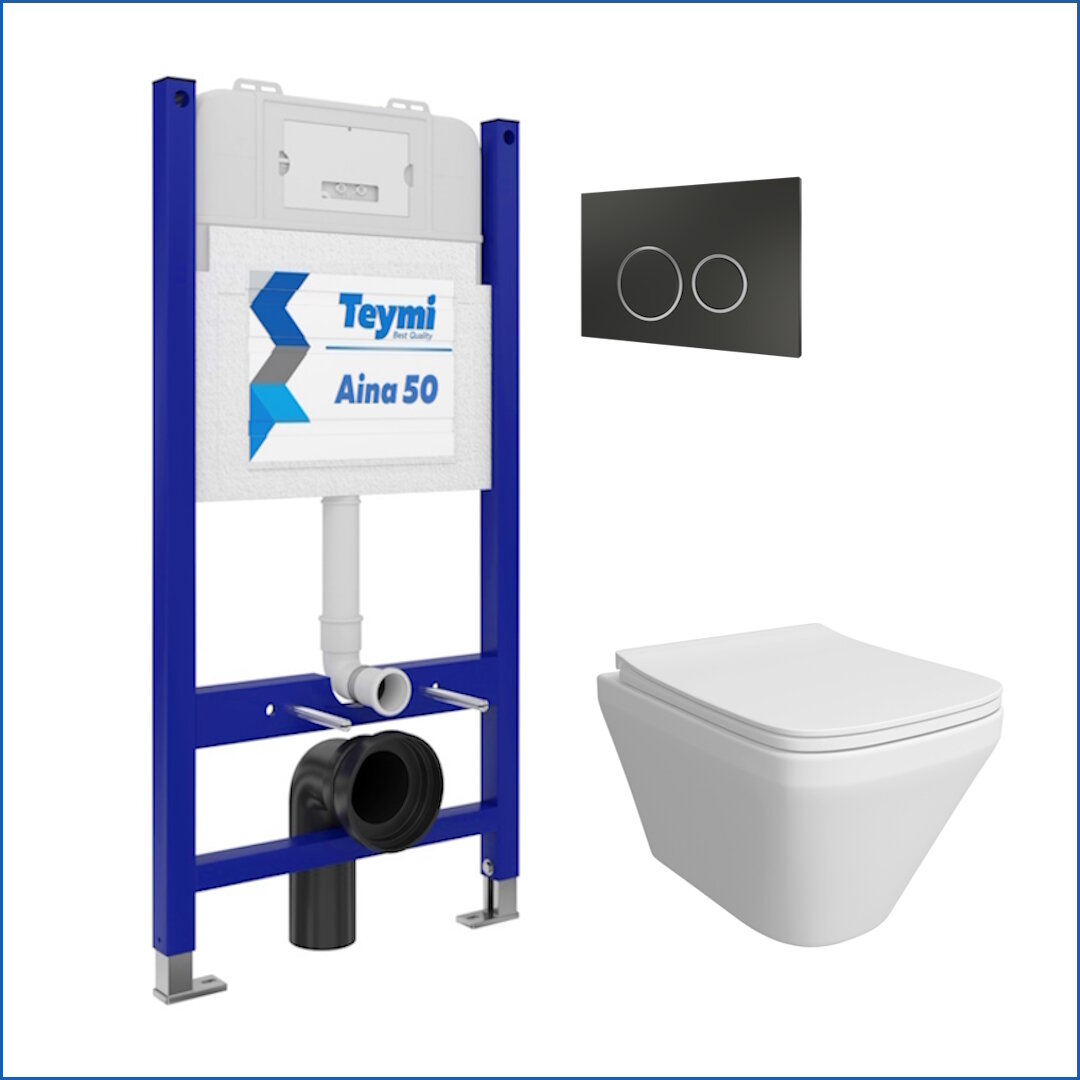 Инсталляция с унитазом комплект 5 в 1 Teymi унитаз подвесной безободковый Kati кнопка черная F00632