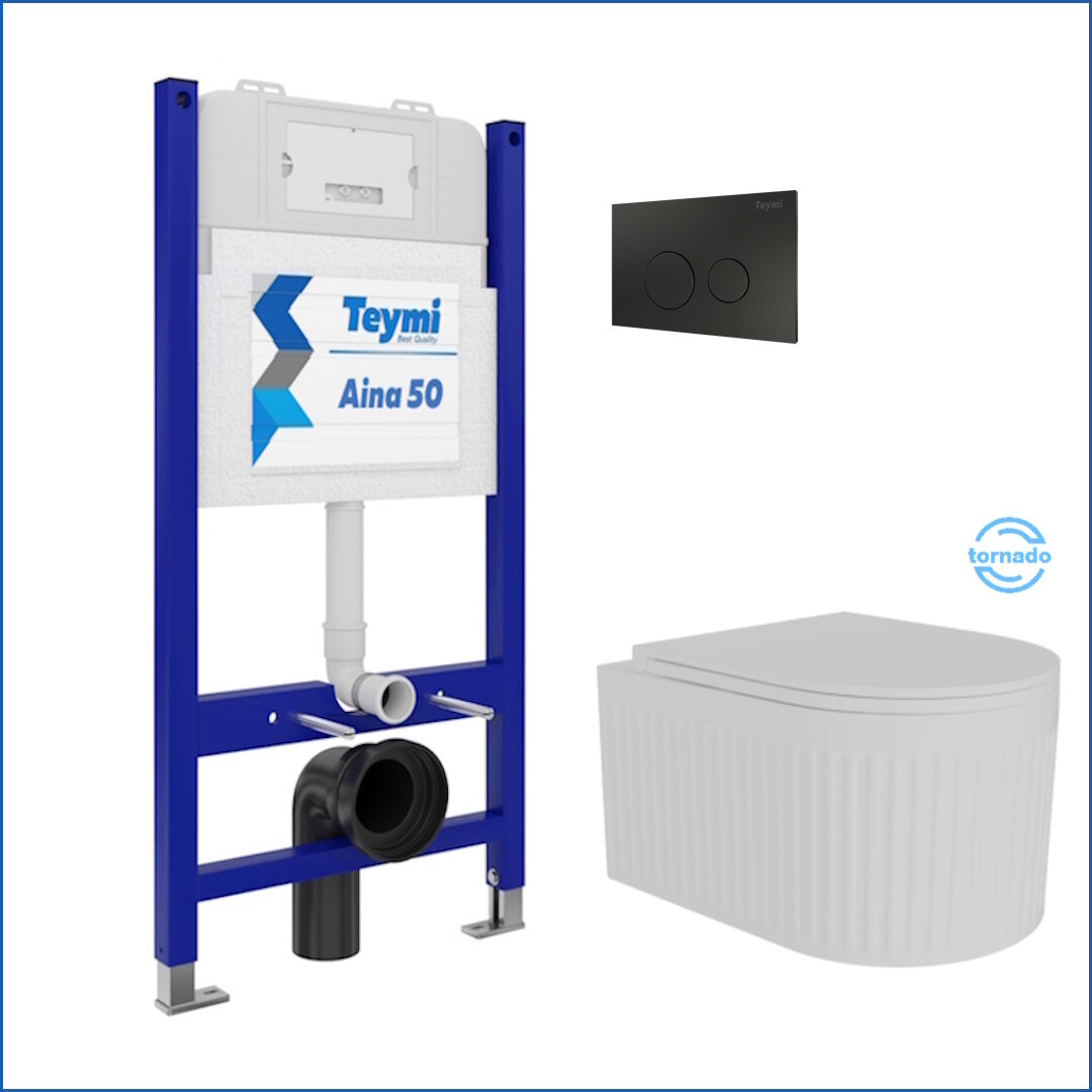 Инсталляция с унитазом комплект 5 в 1 Teymi унитаз подвесной безободковый торнадо Martta Vortex кнопка нержавеющая сталь F14551