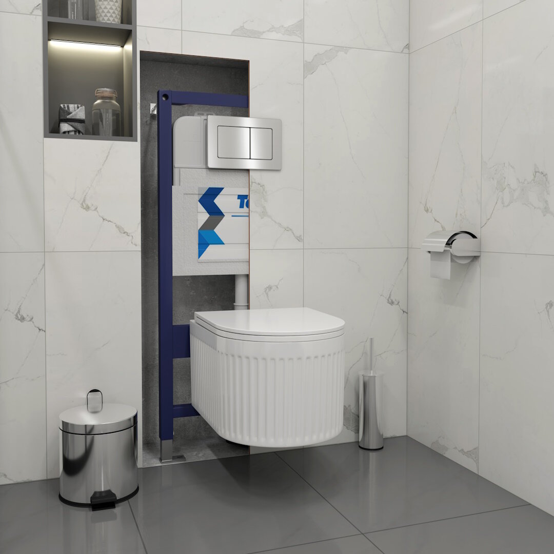 Инсталляция с унитазом комплект 5 в 1 Teymi унитаз подвесной безободковый торнадо Martta Vortex кнопка нержавеющая сталь F14545