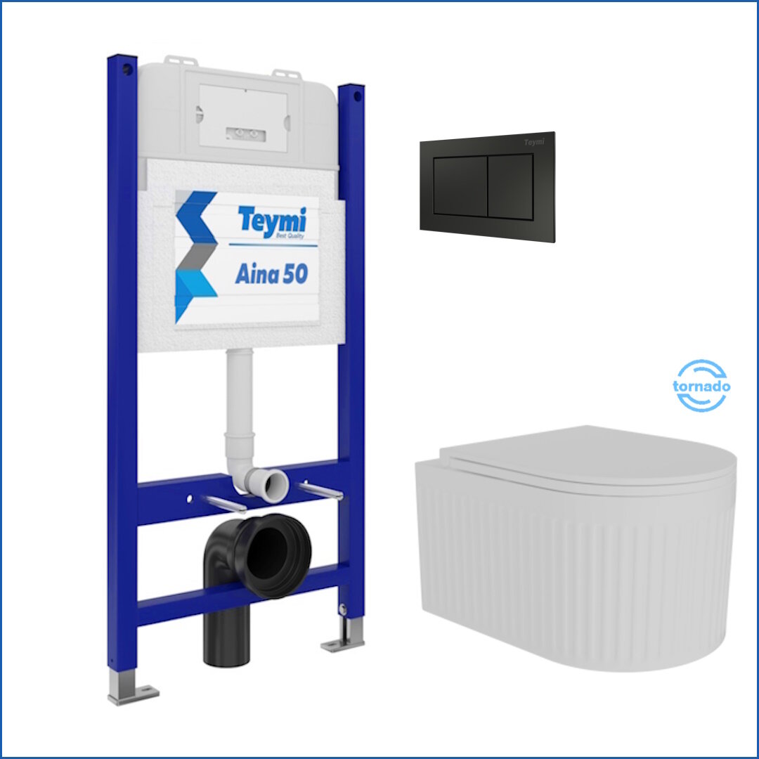Инсталляция с унитазом комплект 5 в 1 Teymi унитаз подвесной безободковый торнадо Martta Vortex кнопка черная F14537