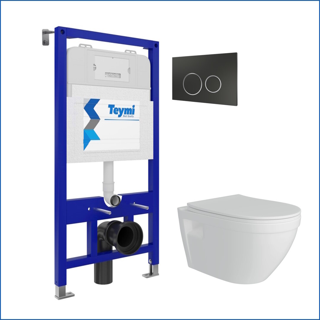 Инсталляция с унитазом комплект 5 в 1 Teymi унитаз подвесной безободковый Vitra кнопка черная F00318