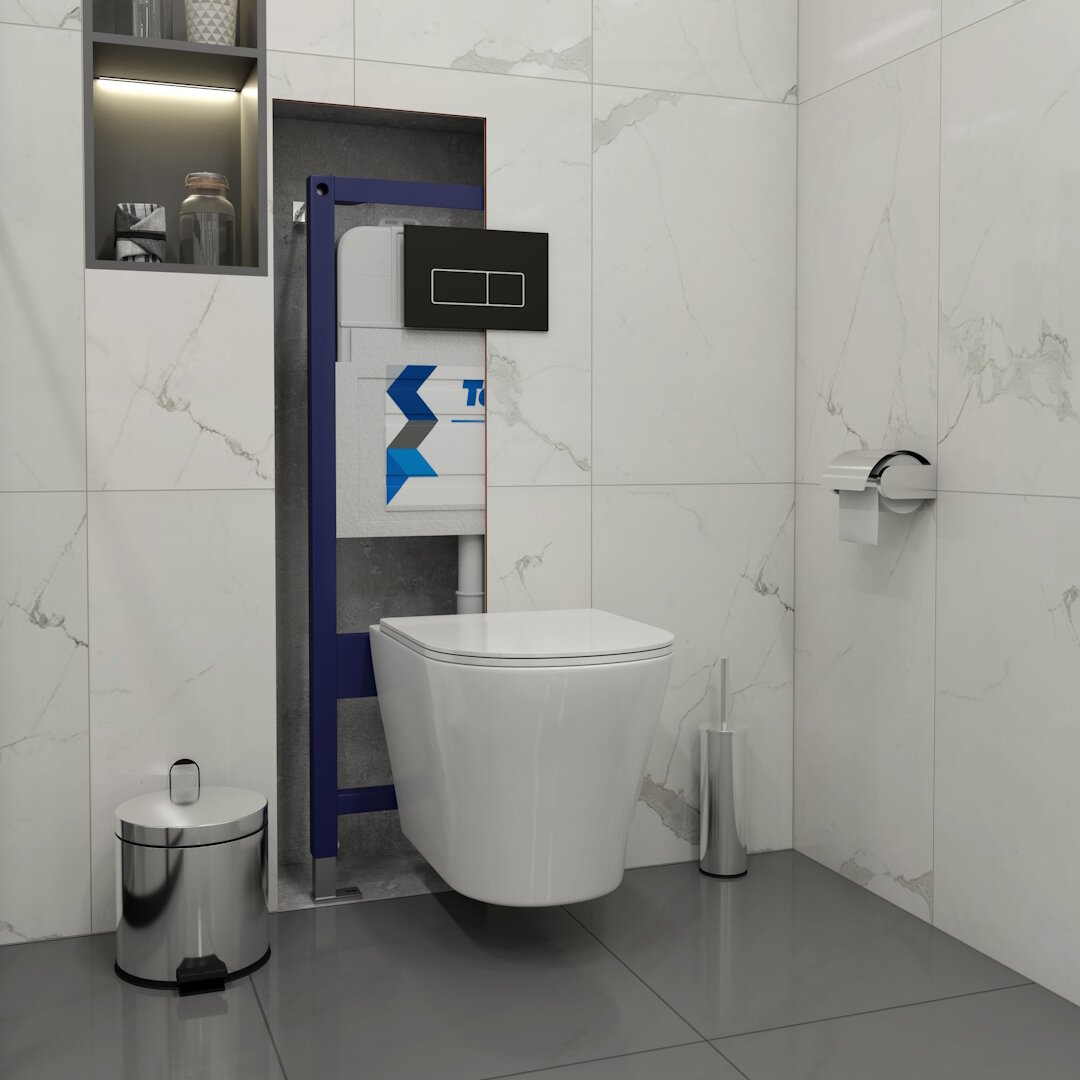 Инсталляция с унитазом комплект 5 в 1 Teymi унитаз подвесной безободковый Ellie кнопка нержавеющая сталь F13321